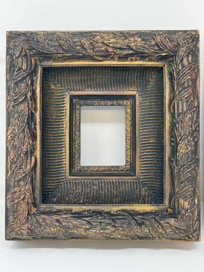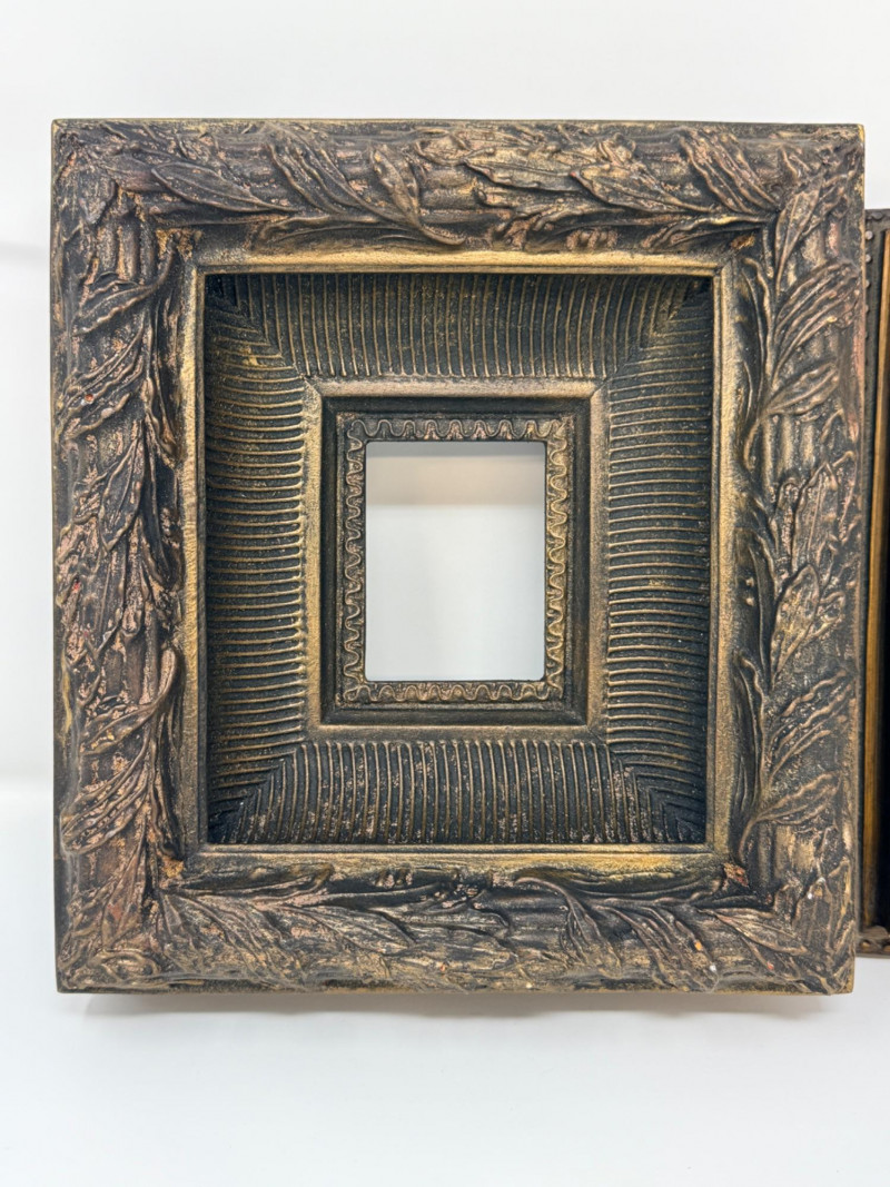 Vintage ornate picture frames featuring ripple molding and an antiqued gold finish and incorporates elements of Baroque or Dutch ripple molding. The outer edge is decorated with a "trophée" or leaf-like relief pattern.