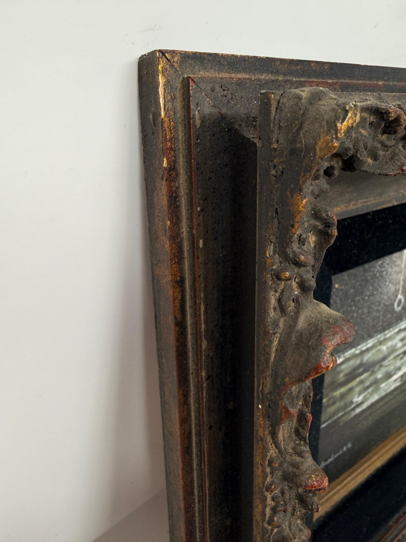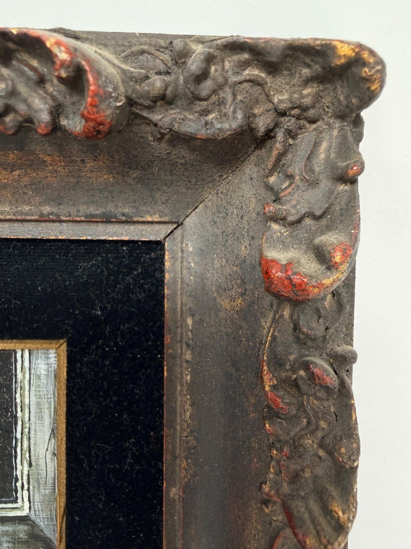 Geranium In The Night Original Oil Painting - Oils By Broderick. In a phenomenal black with red accents Baroque style frame with black velvet matting.
