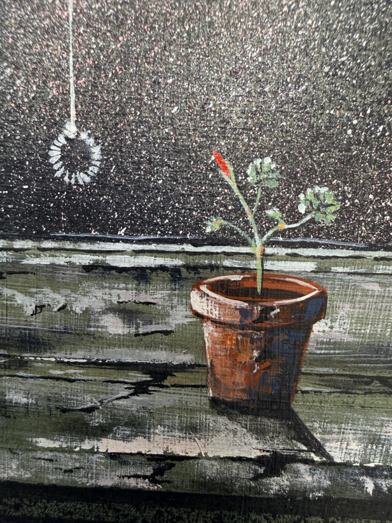 Lot # 144 - Geranium In The Night Original Oil Painting - Oils By Broderick