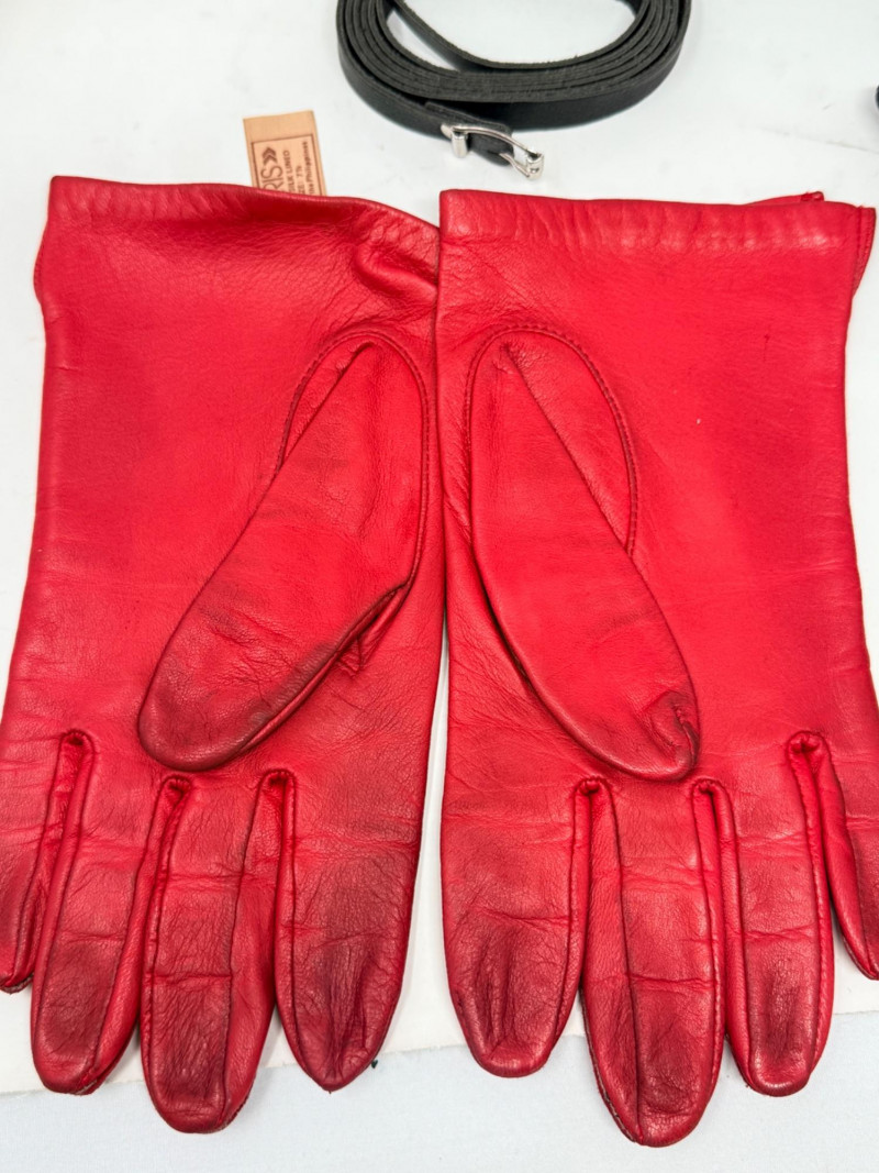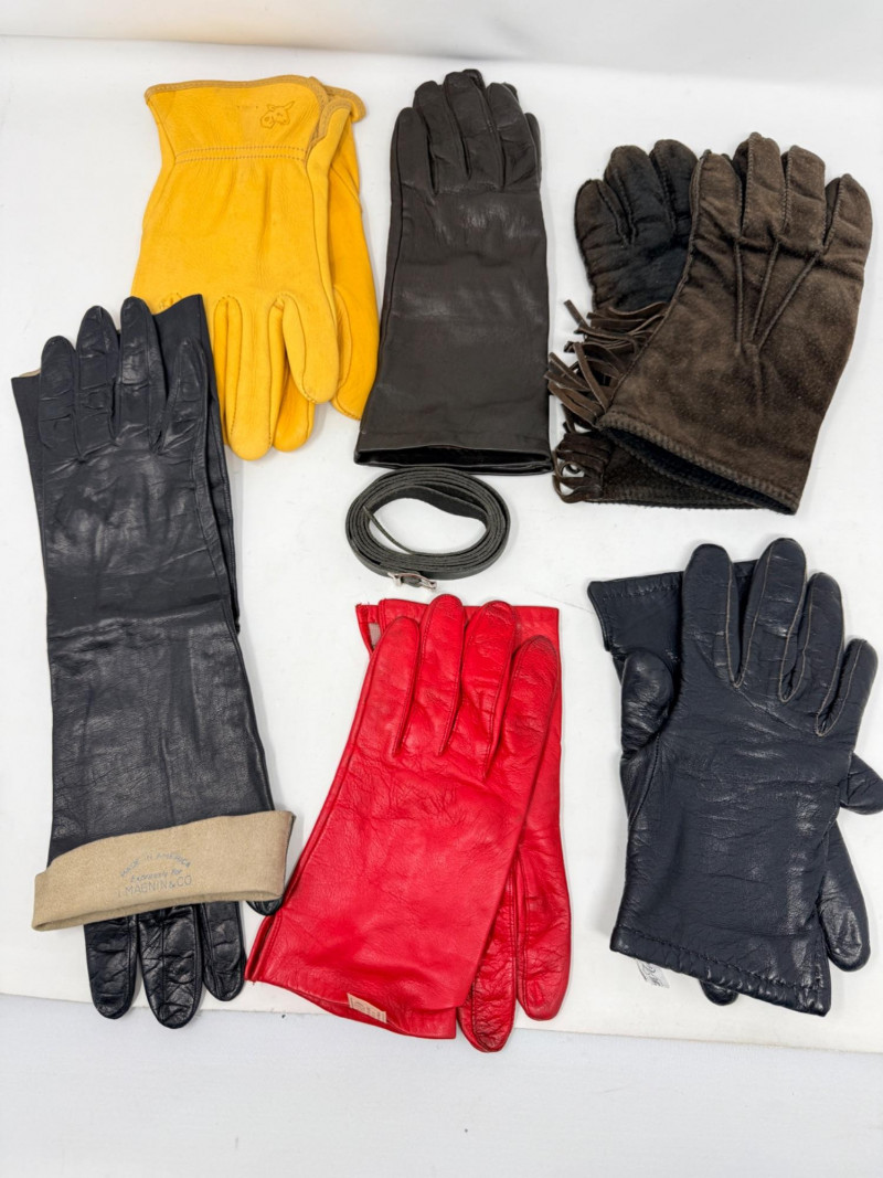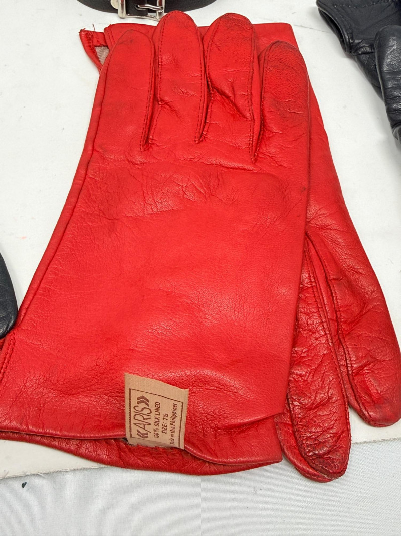 Vintage Leather Gloves - Ari- Saks Fifth Ave - I Magnin - Wells Lamont, plus a thin leather accessory belt.