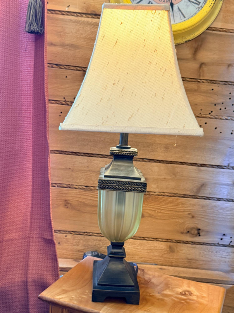 Oil Rubbed Bronze Glass Urn Lamp 6.5”x4”x24” Tested, works
