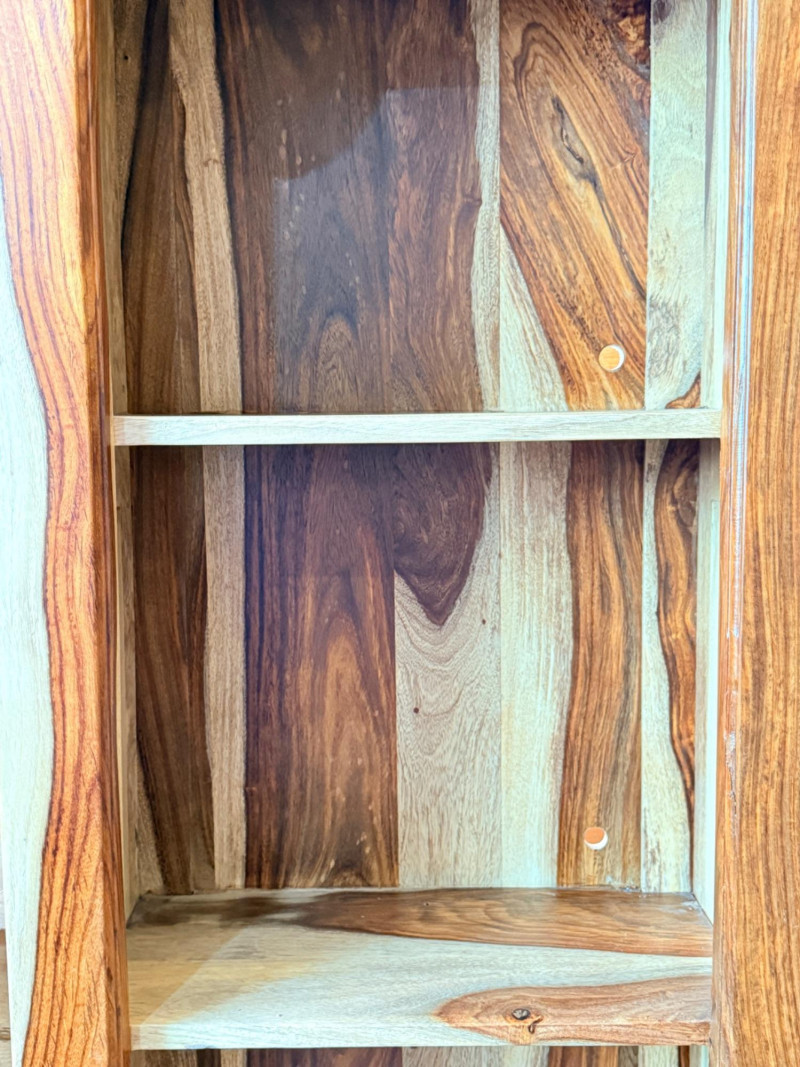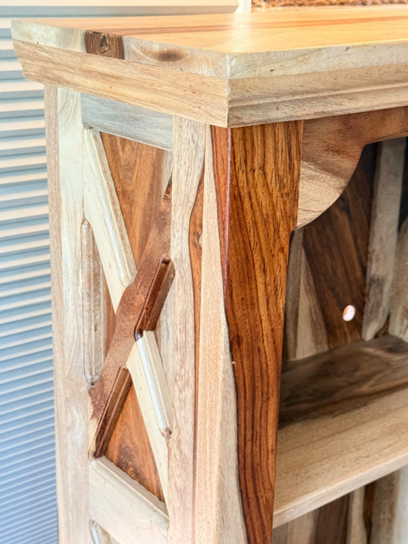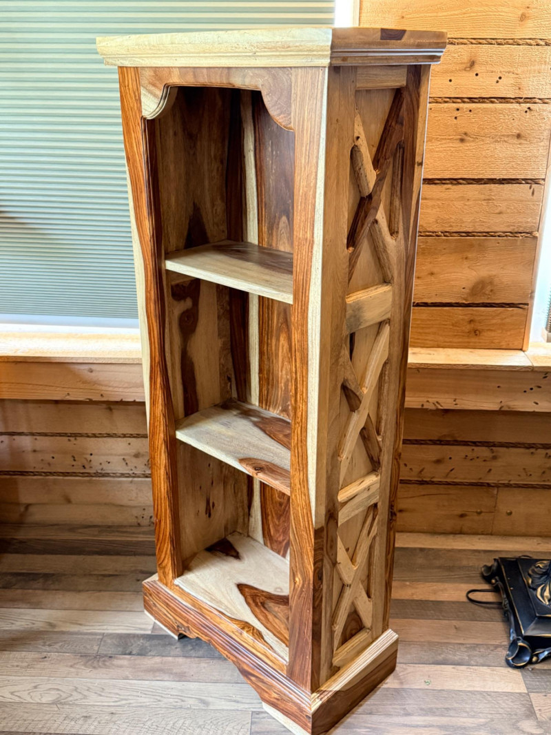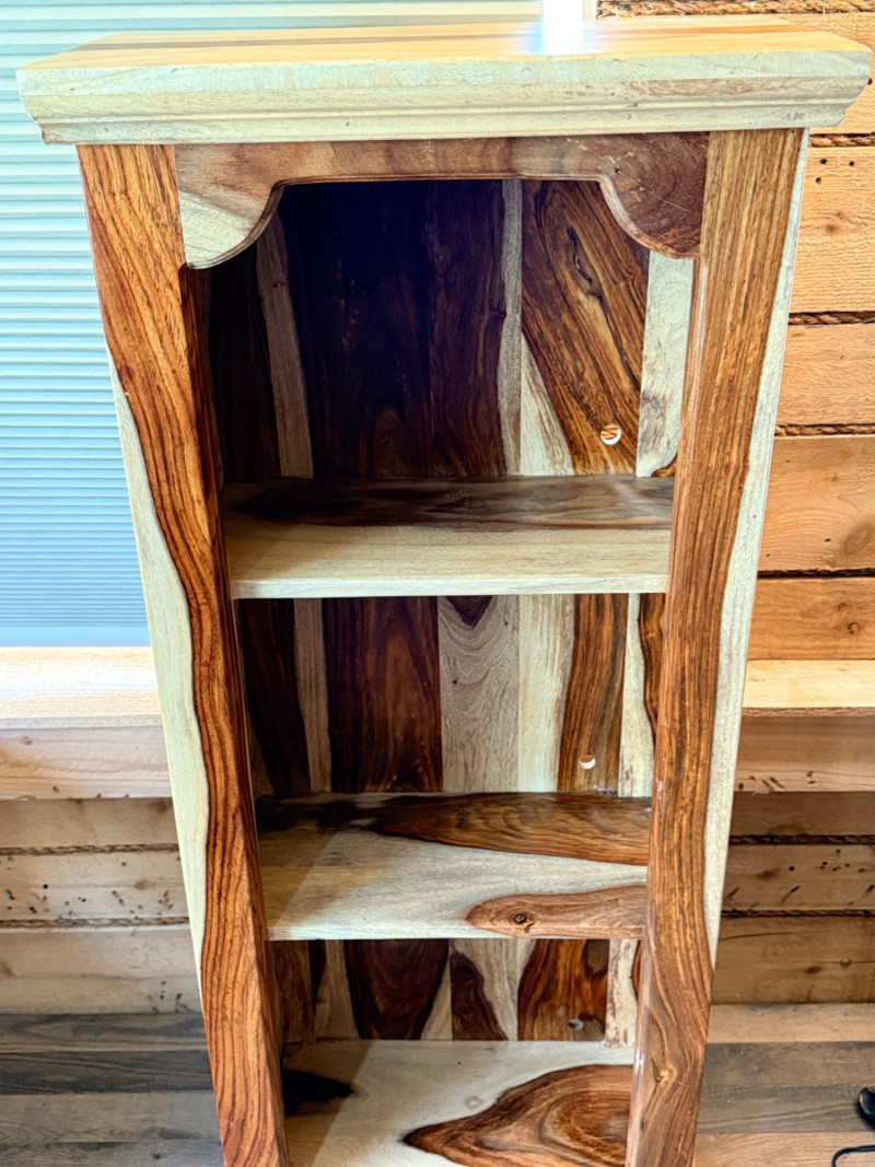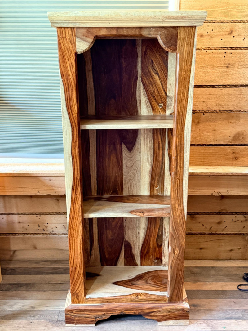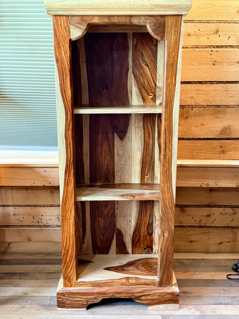 Sheesham or Indian Rosewood Bookcase Sheesham Wood Bookcase, notable for the striking contrast of its natural wood grain. These items are often associated with the Tahoe line from Porter Designs. 2 shelf bookcase 19.5”x10.25”x46.5”
