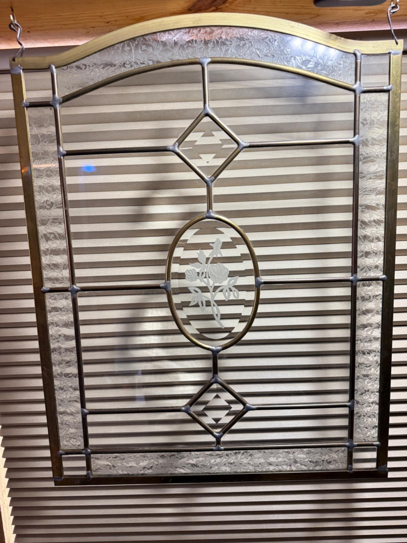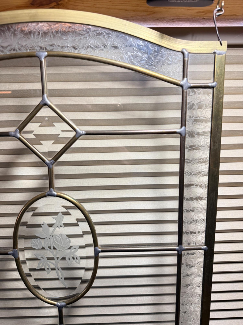 Leaded Beveled and Etched Glass Panel #2 16”x21”