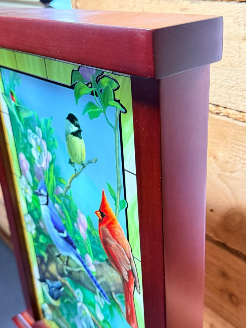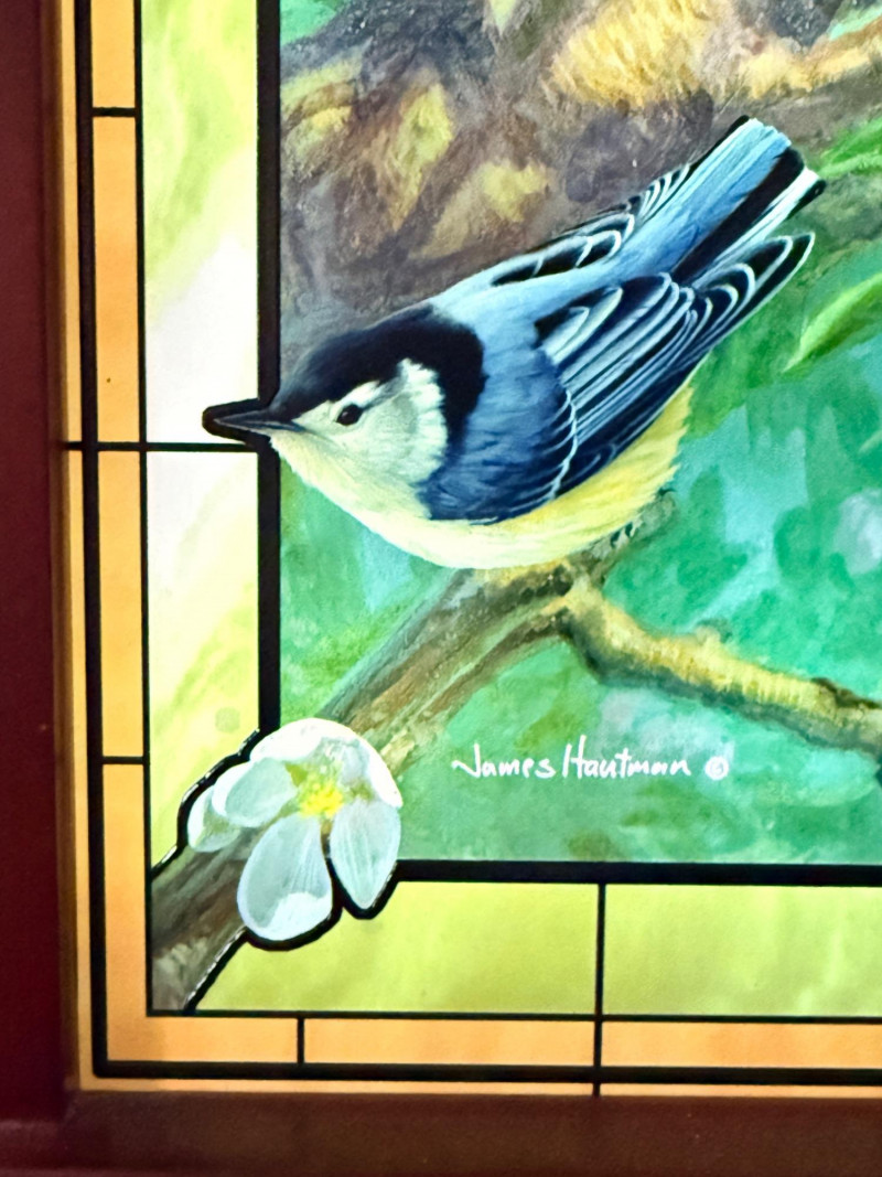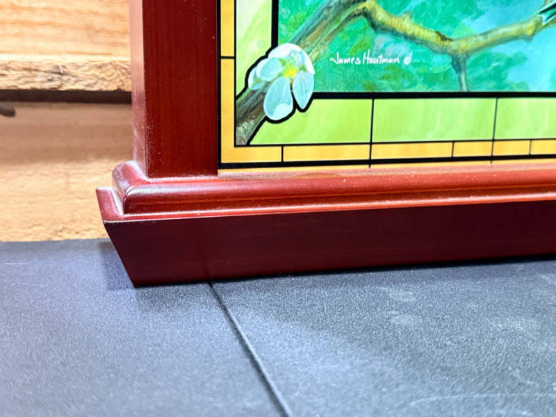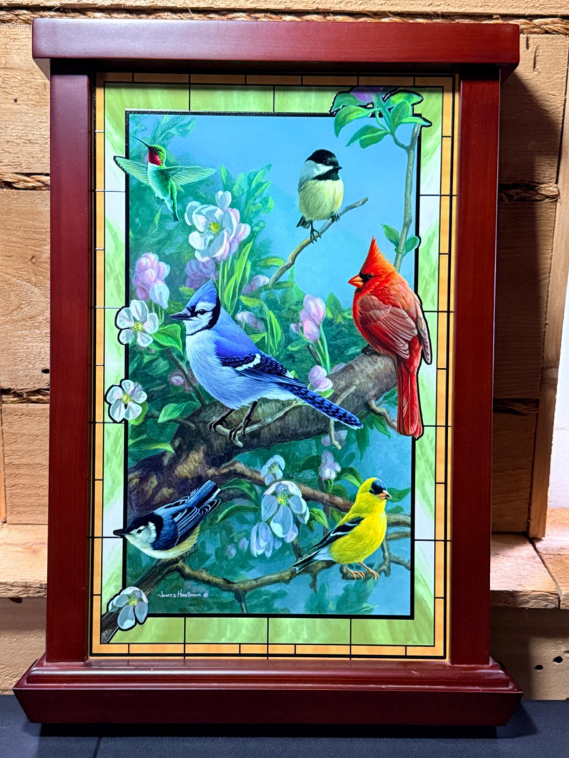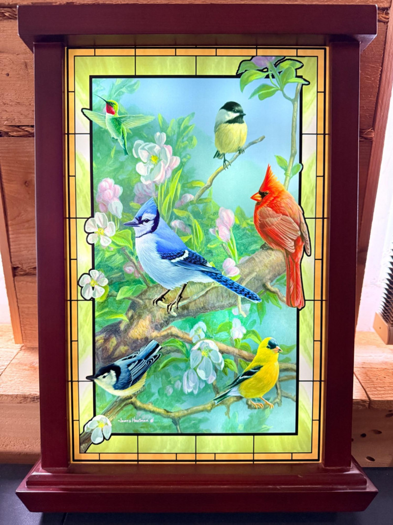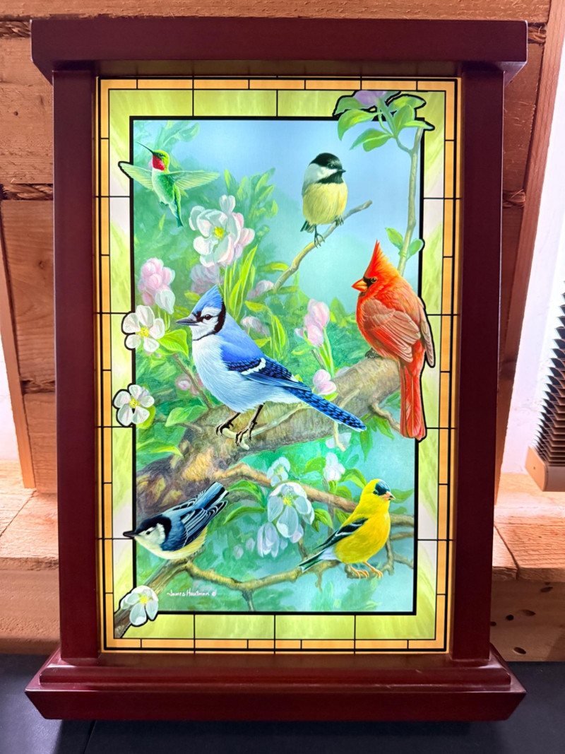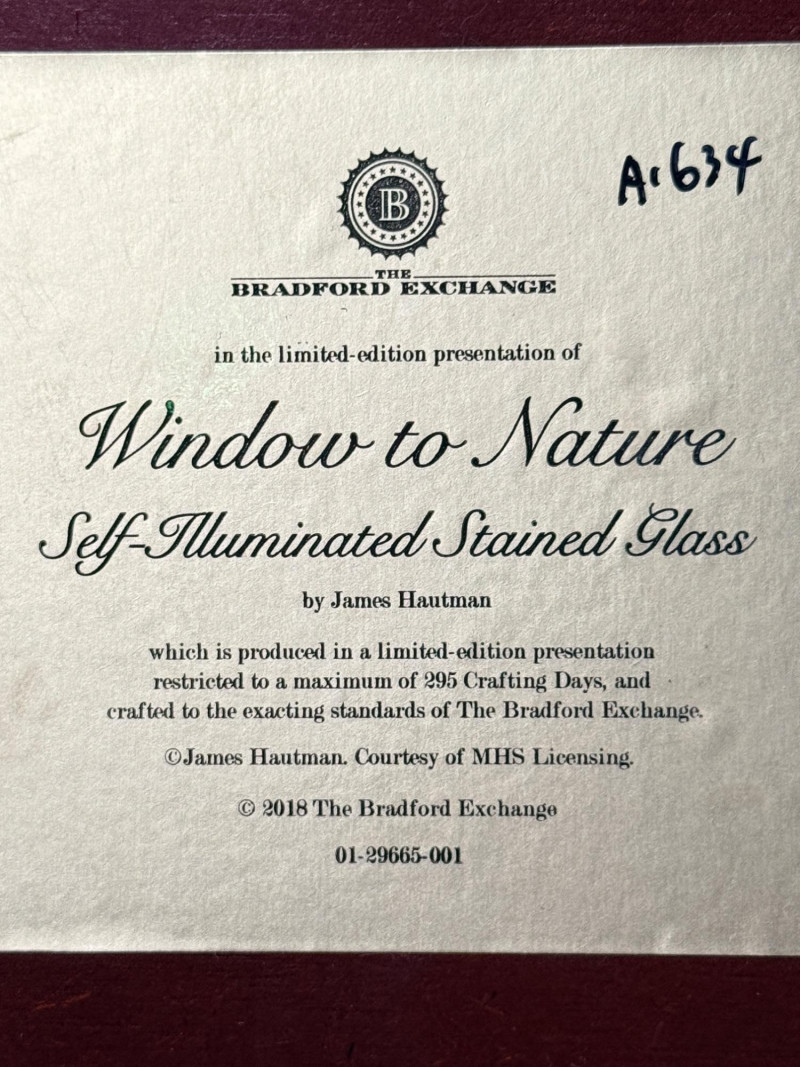 "Window to Nature" illuminated stained glass wall decor featuring artwork by James Hautman, produced by The Bradford Exchange.