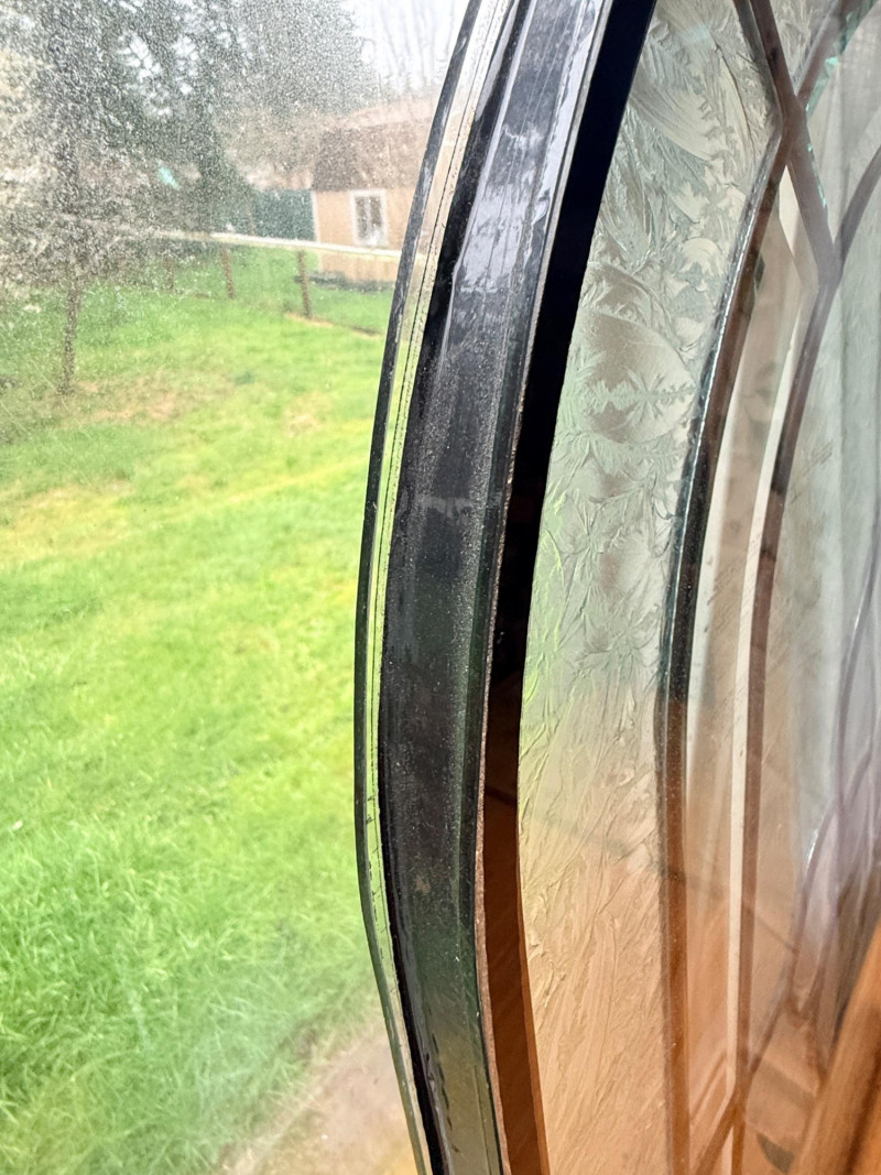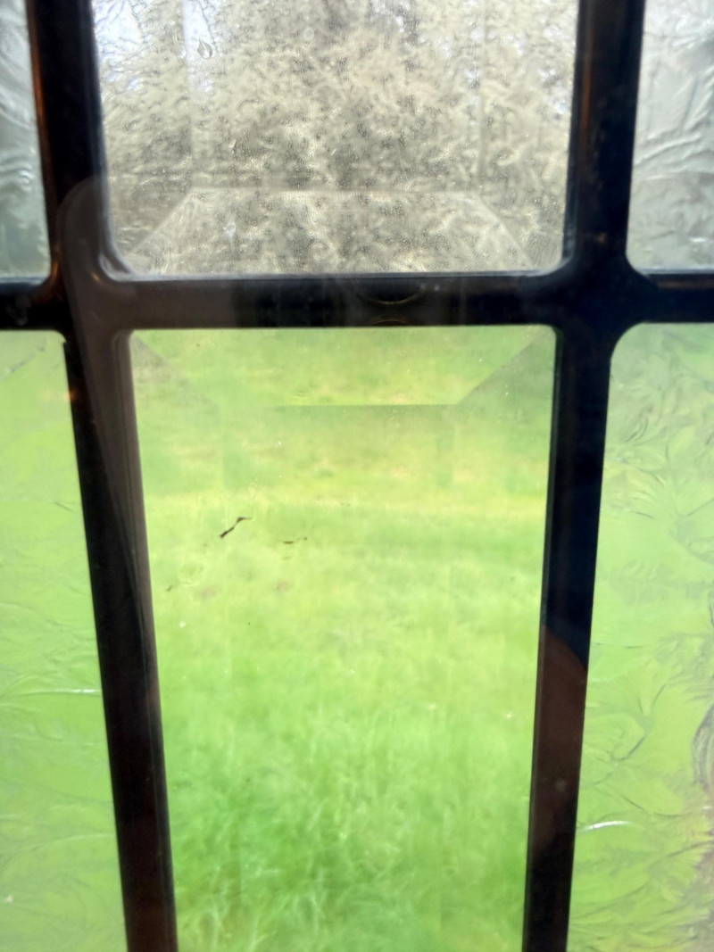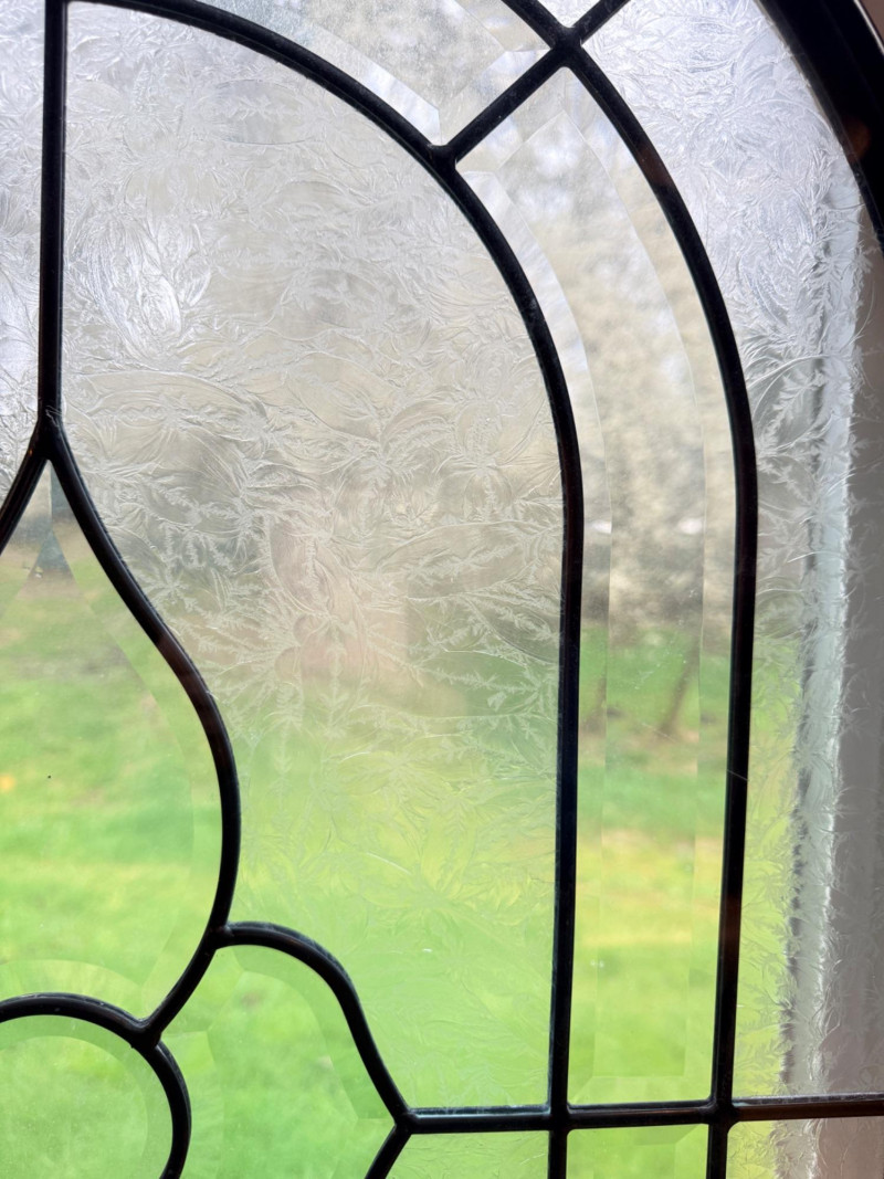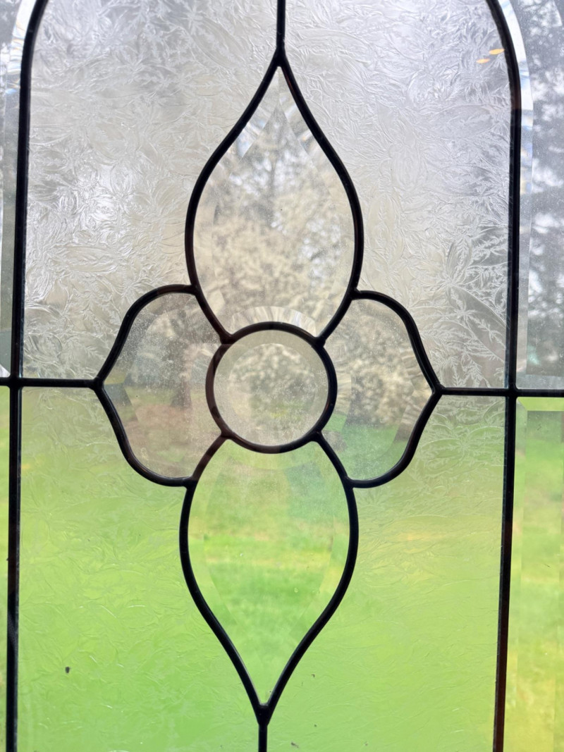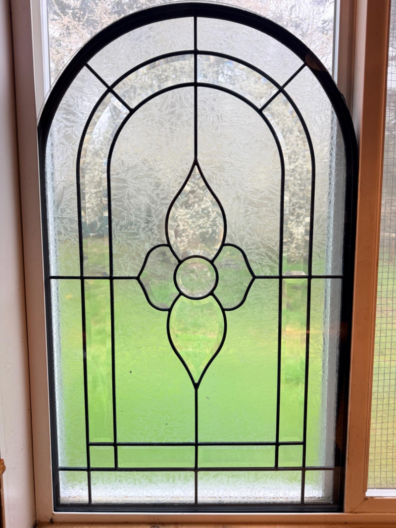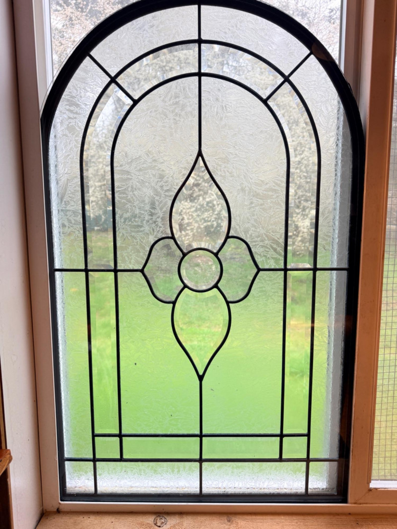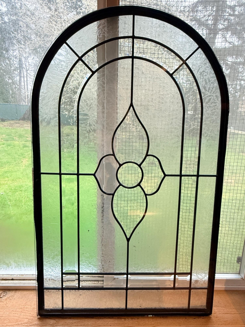 Arched Leaded and Etched Beveled Glass Panel