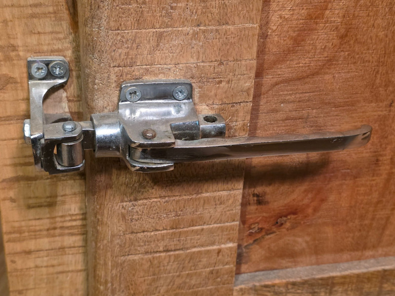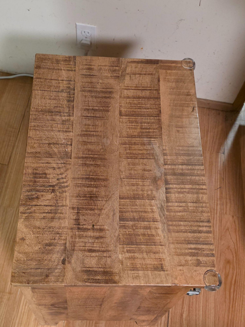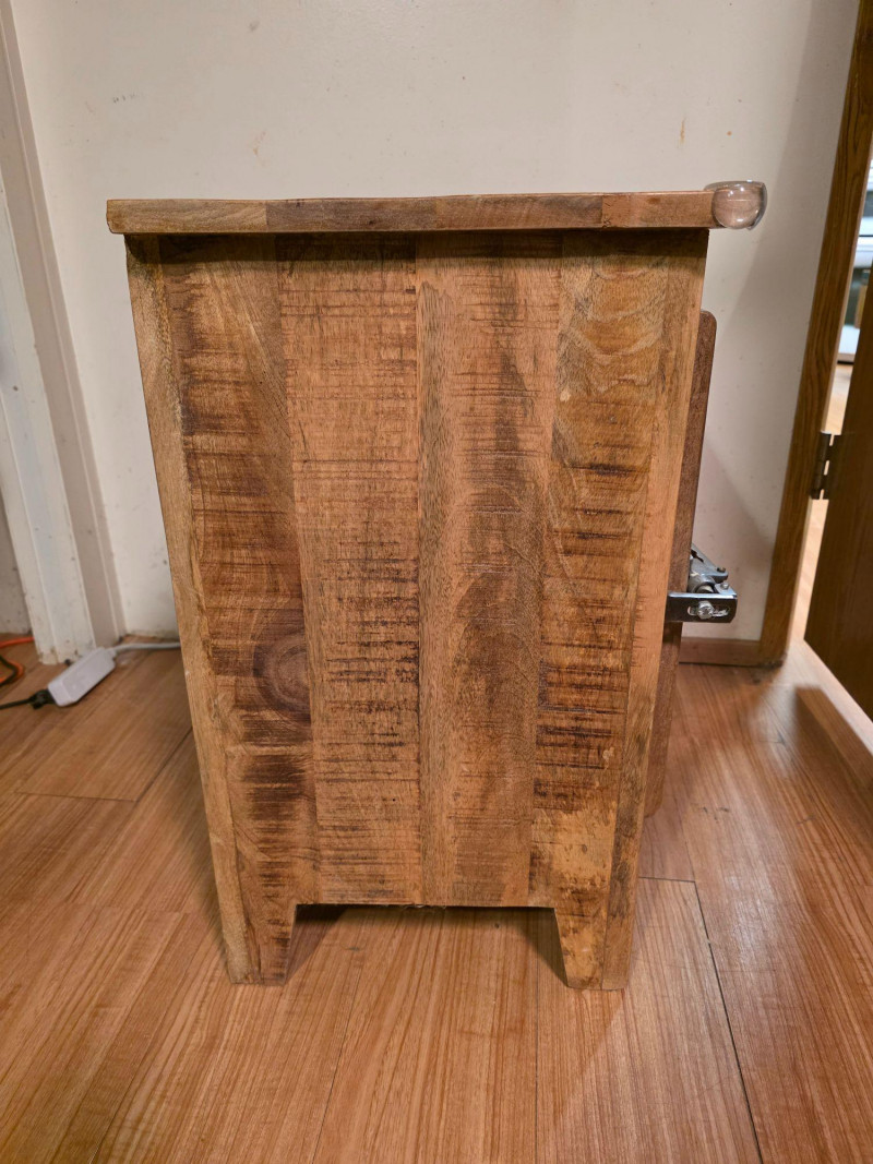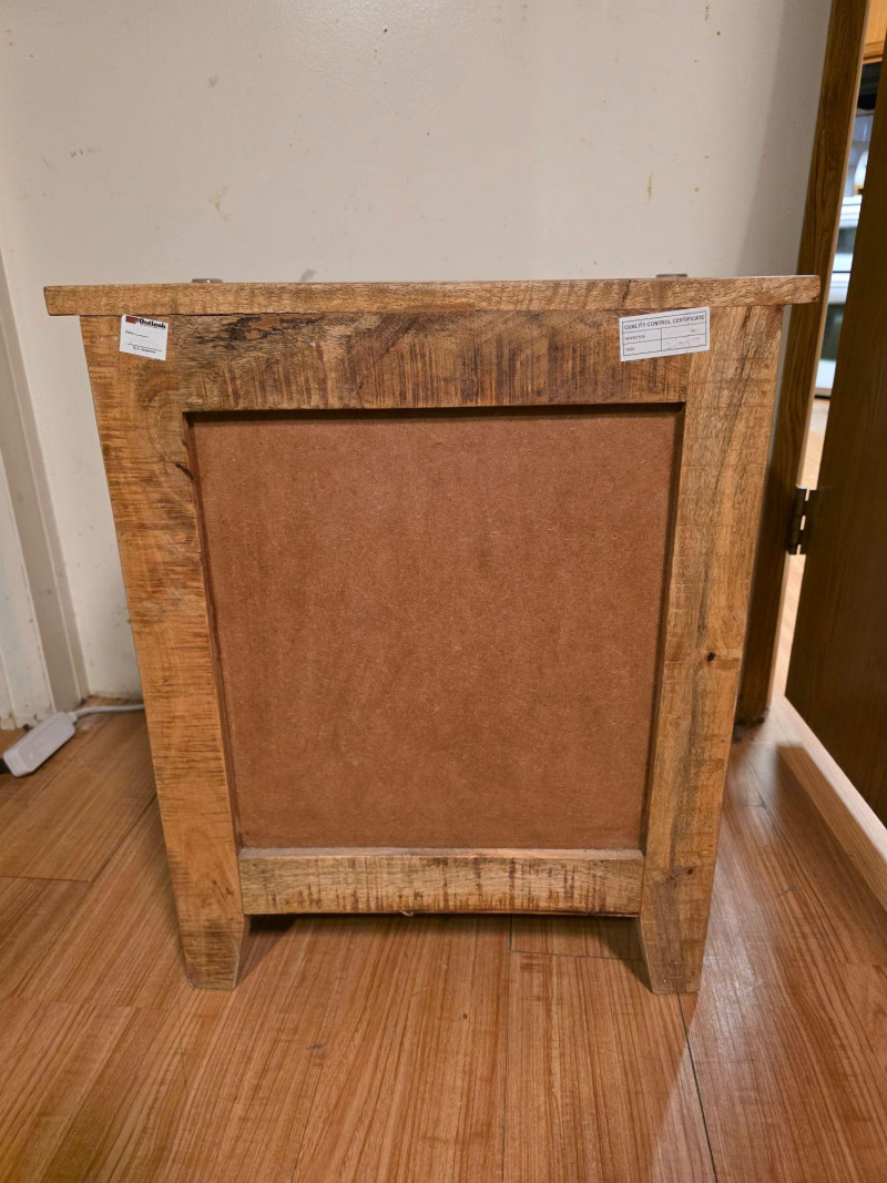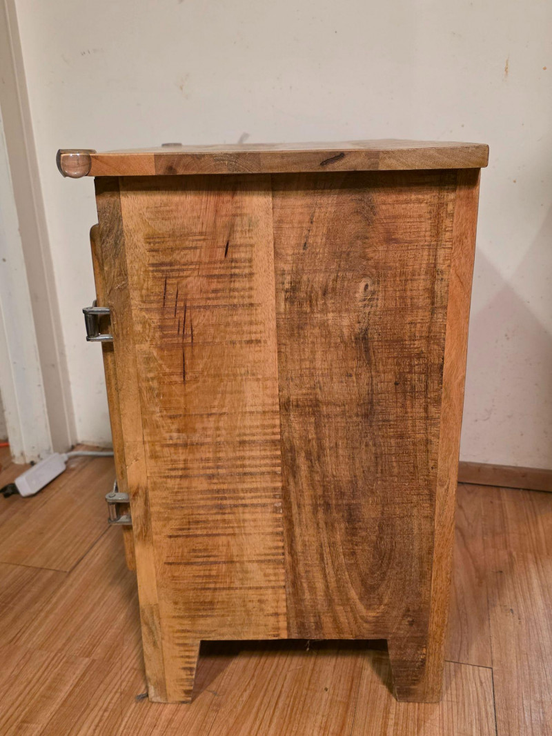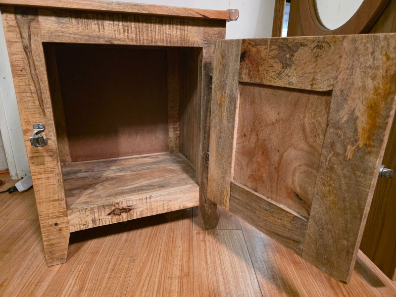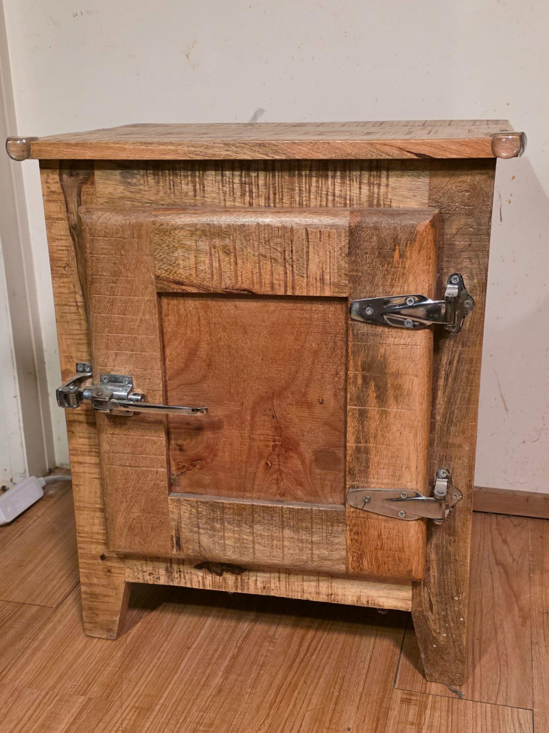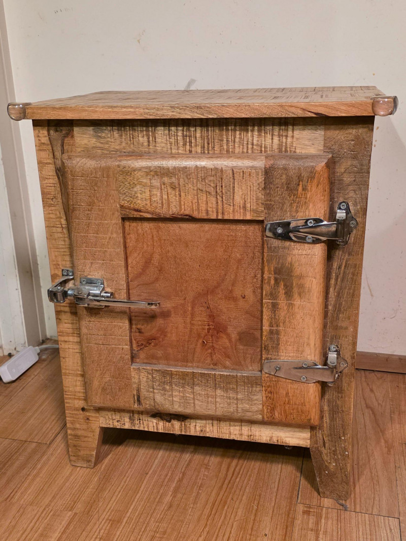 Modern Recreation Of A Rustic-Style Wooden Ice Box Cabinet wood has a rough-sawn look & features metal latches and hinges. As a precursor to modern refrigerators, this historically would have been lined with metal and insulated to store block ice, which kept food cold Popular as rustic farmhouse decor, unique end table, or refurbished home bar cabinet See pics for condition! 24"T x 20"W x 14"D