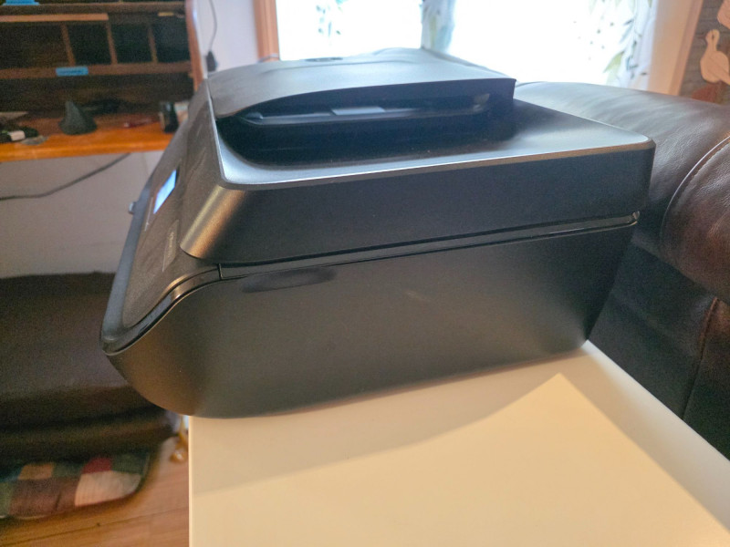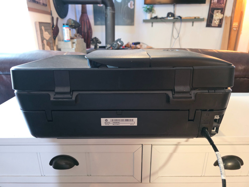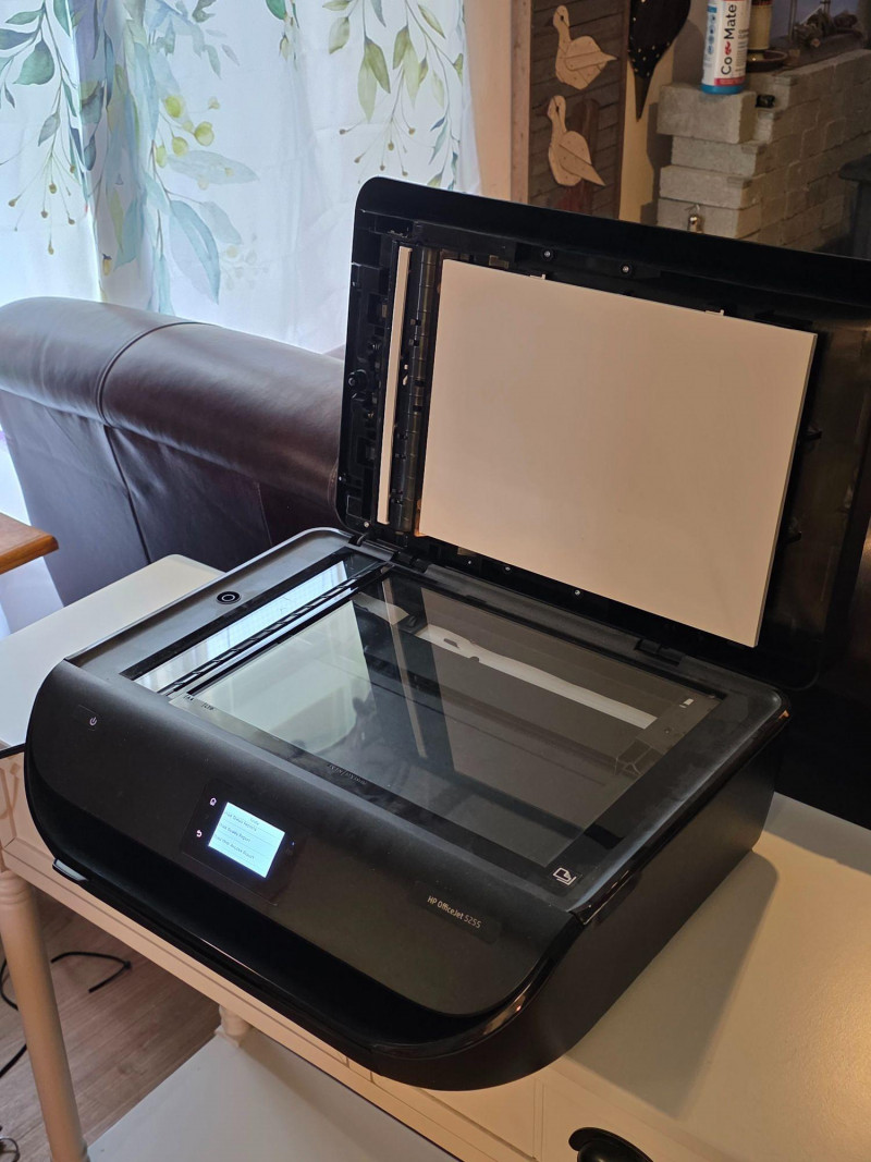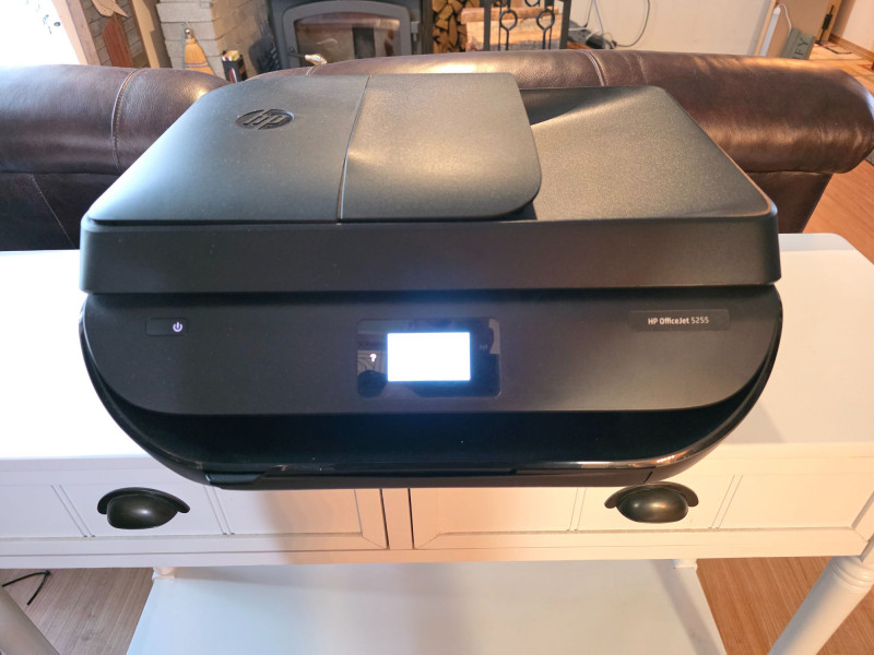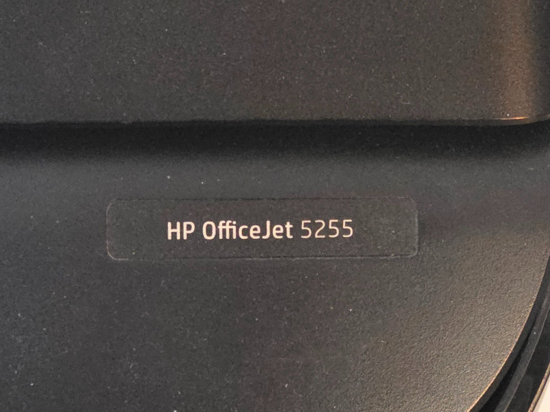 HP OfficeJet 5255 Color All-In-One Printer A compact, wireless all-in-one color inkjet printer designed for home/small office use Featuring printing, scanning, copying and faxing 10 ppm black/7 ppm color speeds, Dual-band Wi-Fi 2.2-inch mono touchscreen 35-sheet ADF Uses HP 63 or 63XL ink cartridges and supports HP Instant Ink Includes power cord Tested - Works! 6.5"T x 17"W x 14"D
