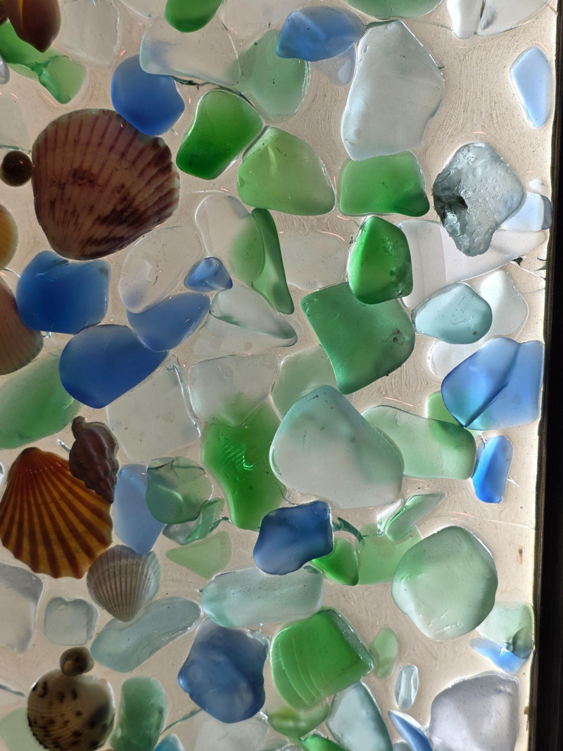 Lot # 77 - Coastal-Inspired DIY Sea Glass & Shell Mosaic Backlit Window Art Piece