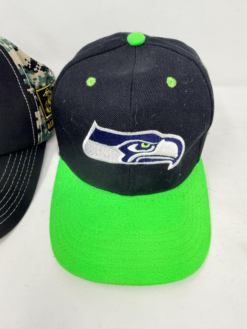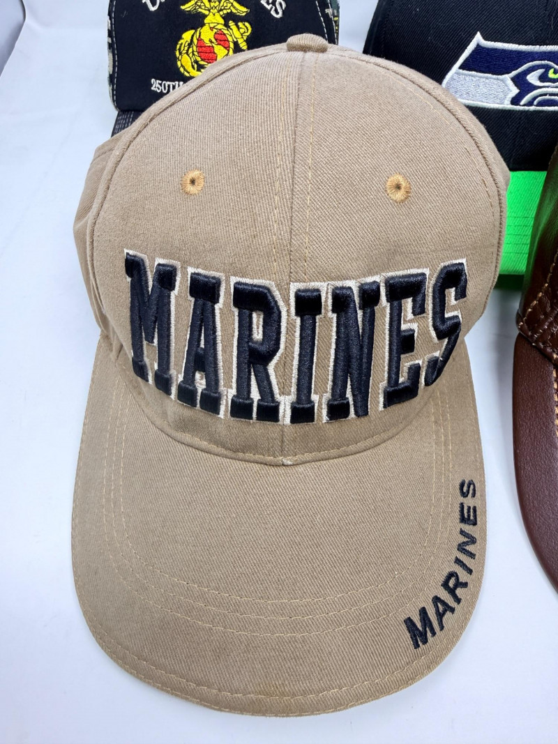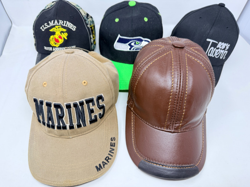Lot # 89 - Baseball Caps - Leather - Marines - Seahawks & Bob’s Tavern
