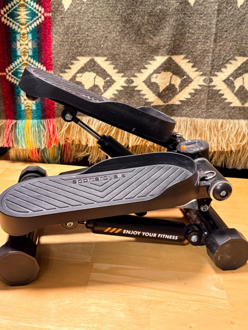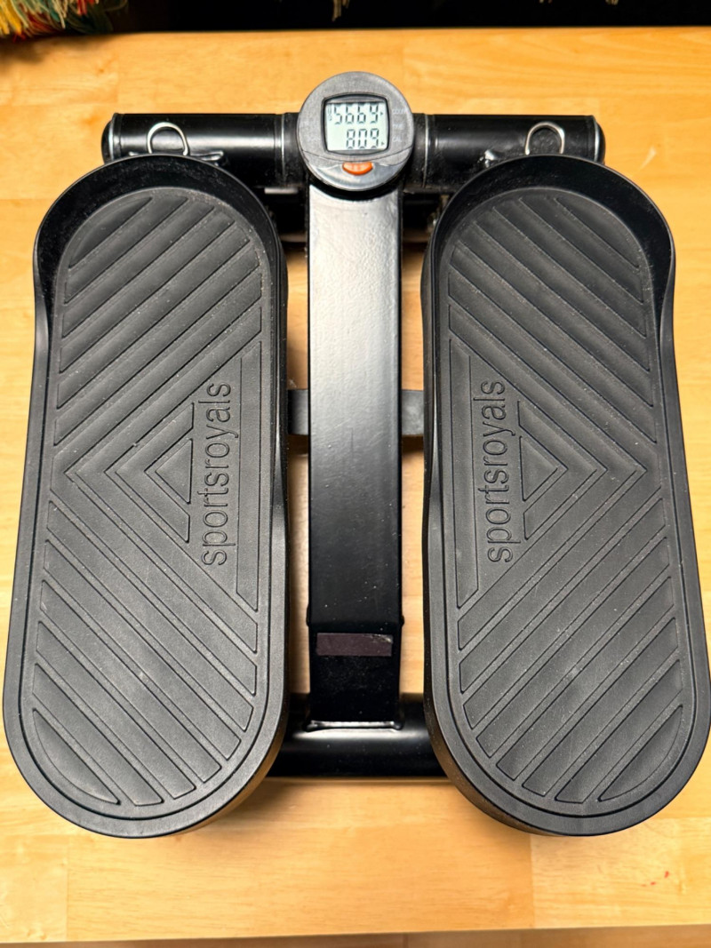 Sportsroyals Compact Stair Step Exerciser Compact hydraulic stair stepper designed for home cardio workouts. Includes an LCD monitor to track steps, time, and calories burned. Supports up to 330 lbs. Simulates stair climbing to strengthen legs, glutes, and improves cardiovascular health
