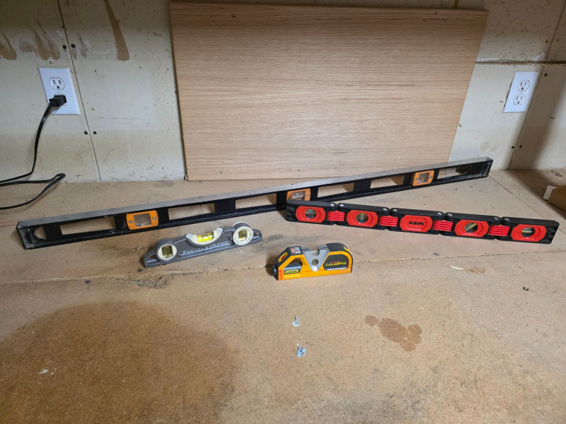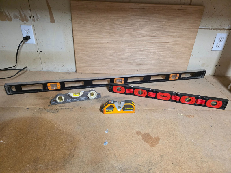 Level Up! (4) Bubble levels of varying lengths (1) 48" Aluminum Bubble Level (1) 24" SuSuMu Multi-Function Foldable Level (1) 10" FatMax Extreme Level (1) 6" Laser LevelPro With Tape Measure 4 pieces in all!