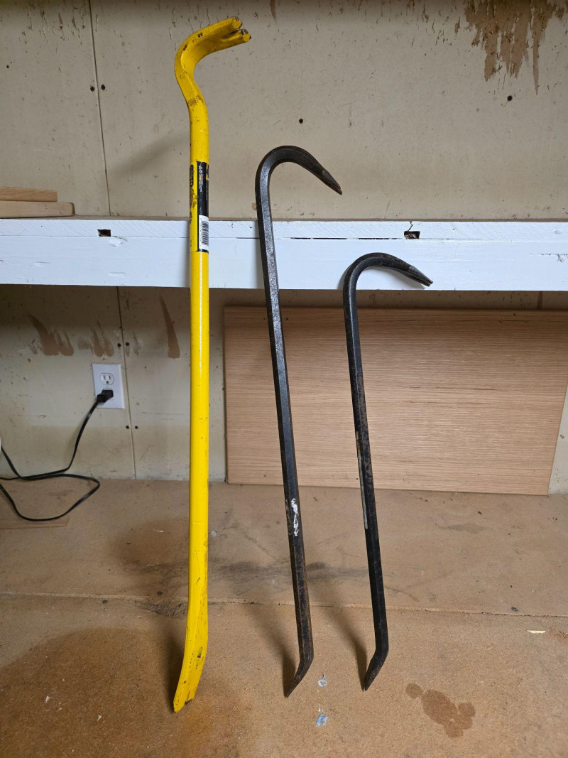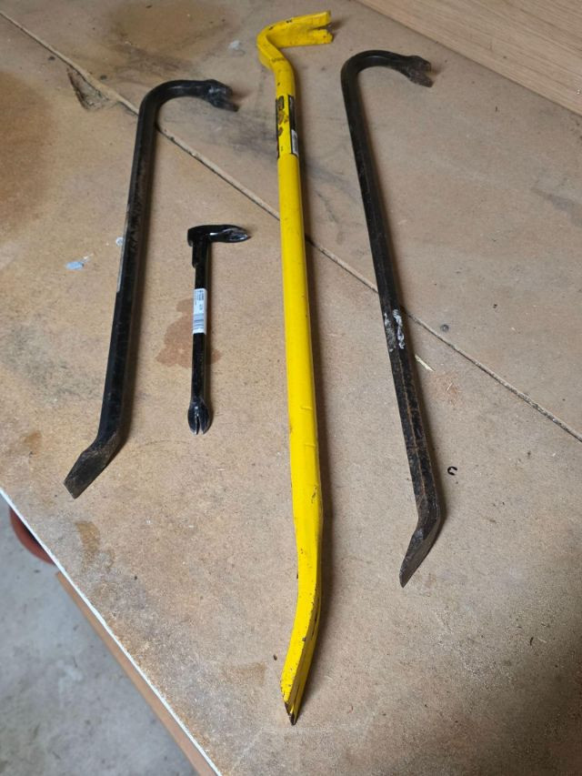 (3) Wrecking Bars & (1) Nail Puller (1) Stanley FatMax 35.5" Wrecking Bar (2) 29.5" & 24" Wrecking Bars (1) Vaughn 10.5" Bear Claw 4 tools in all!