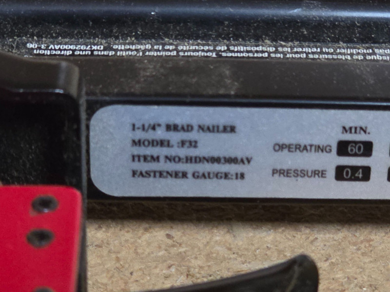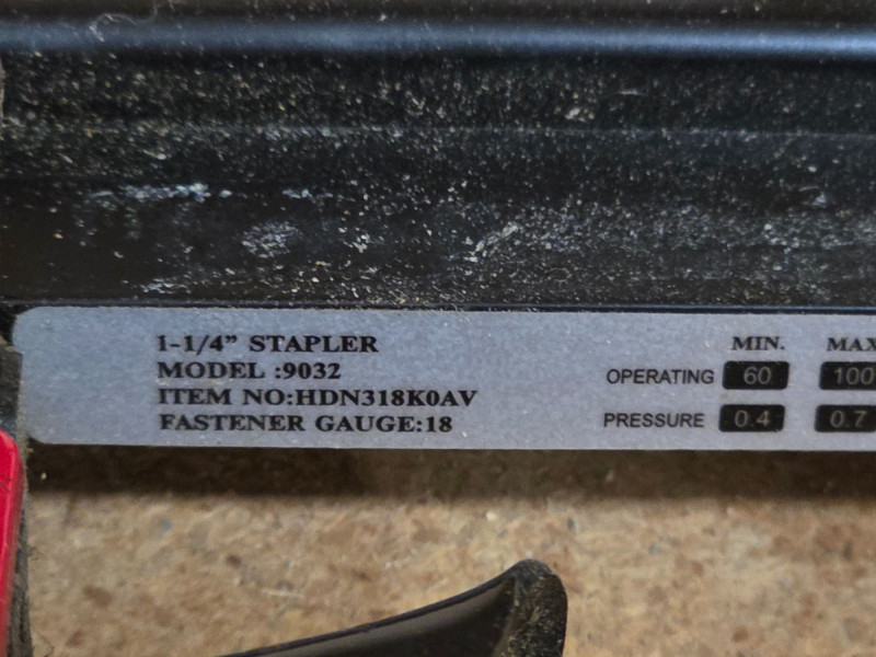 Husky 1.25" Air 18G Brad Nailer & 1.25" Air 18G Stapler (1) Husky 1 1/4" Air 18G Brad Nailer - Model #F32 100 Max PSI (1) Husky 1/4" Air Stapler - Model #9032 100 Max PSI Untested!