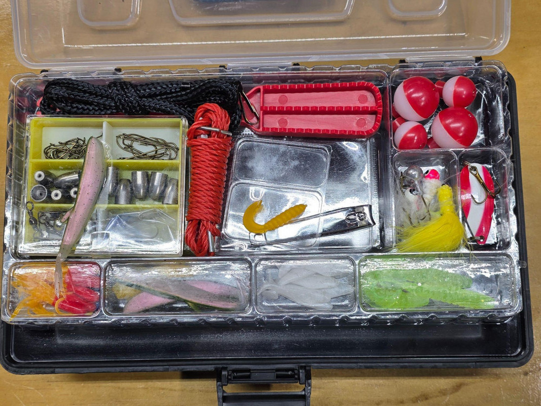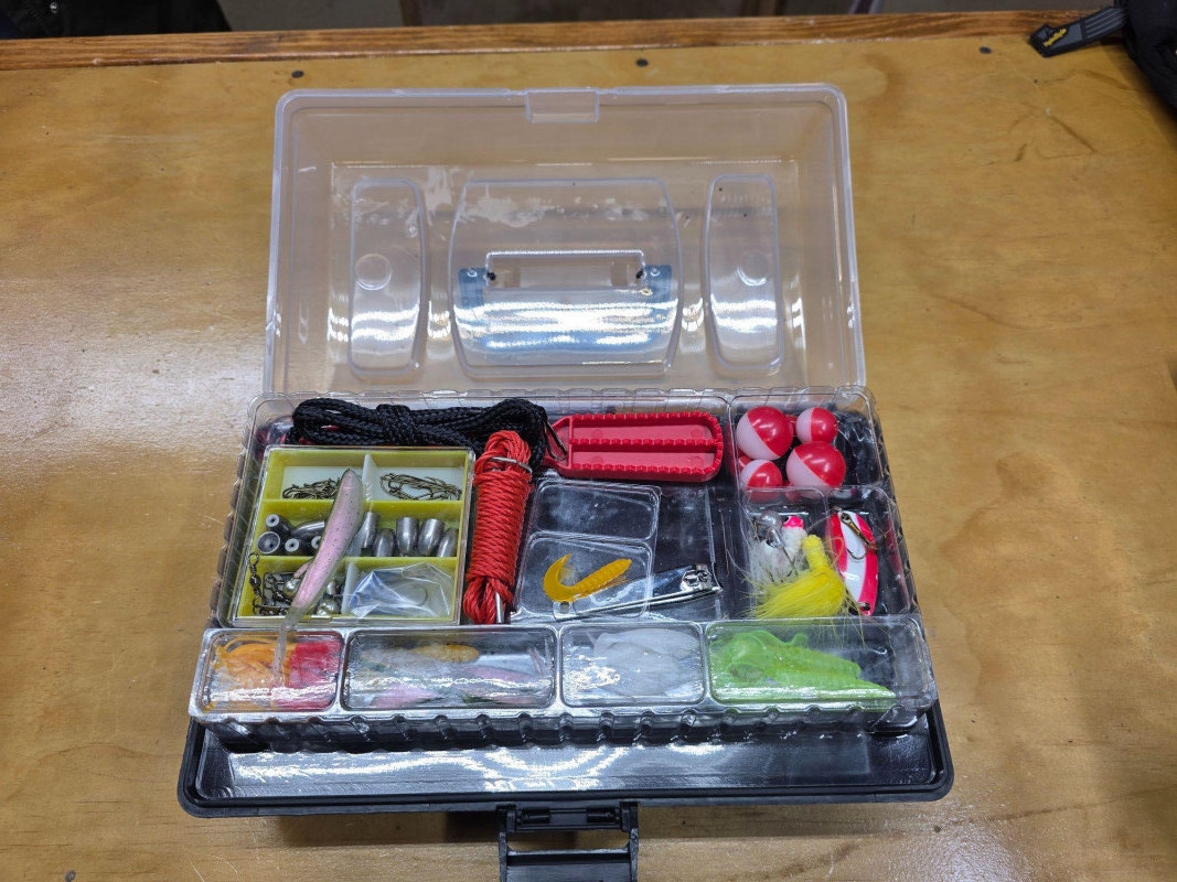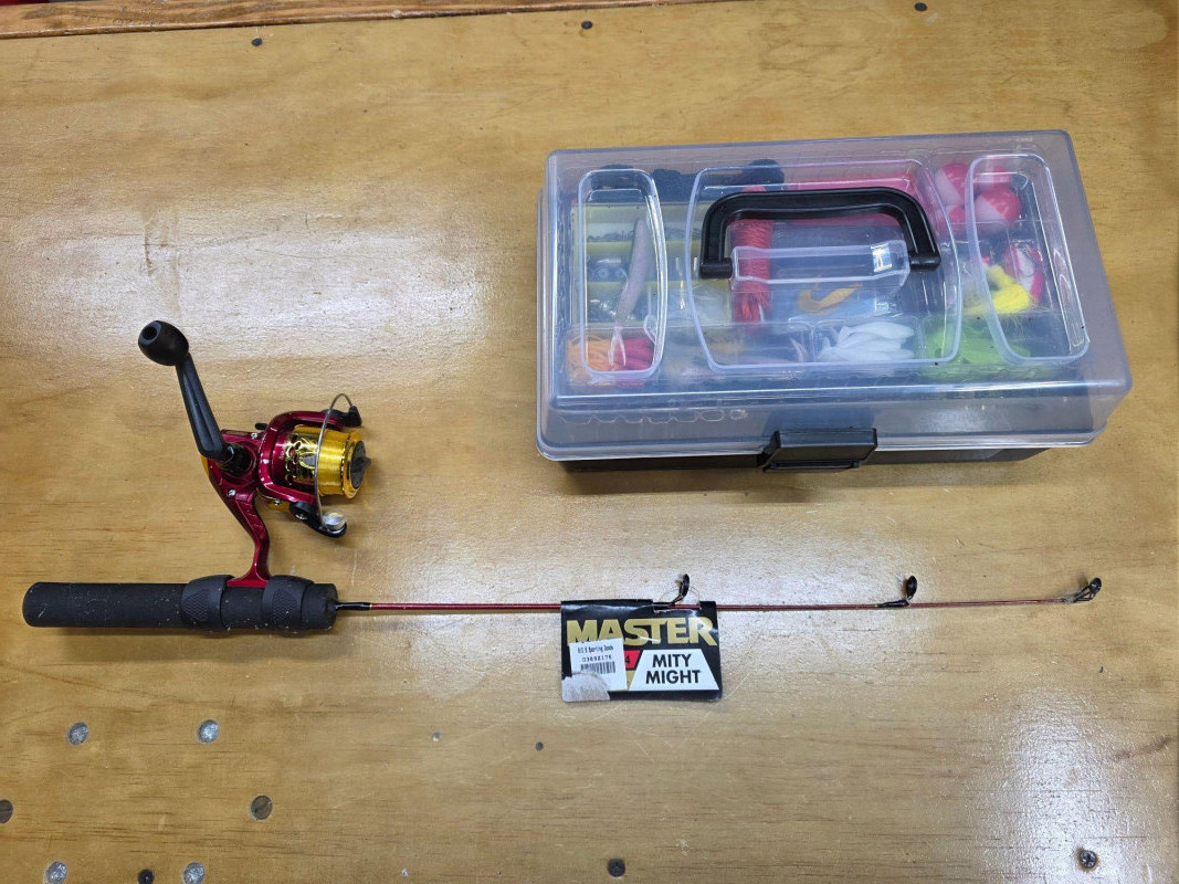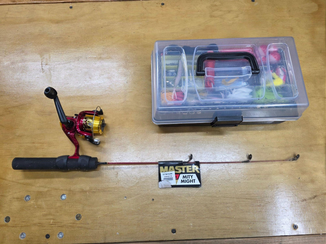 Master Mity Might Fishing Rod/Reel & Small Tackle Box Of Gear Master Mity Might fishing rod is 24" long and still has the tag from Big5 (New) Master Spinning Rod 402RD Tackle box is new full of bobbers, weights, hooks, lures and other gear (New in box) Tackle box: 5"T x 12"W x 7"D Have your fishing gear in your truck wherever you go!