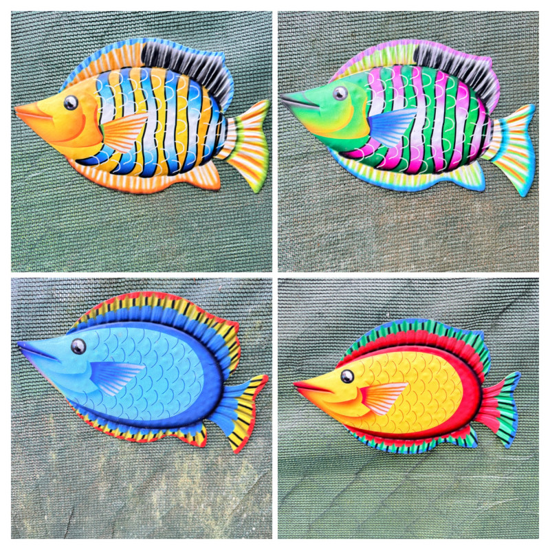 (4) Metal Tropical Fish 4 colorful metal fropical fish 11.5”x7” each