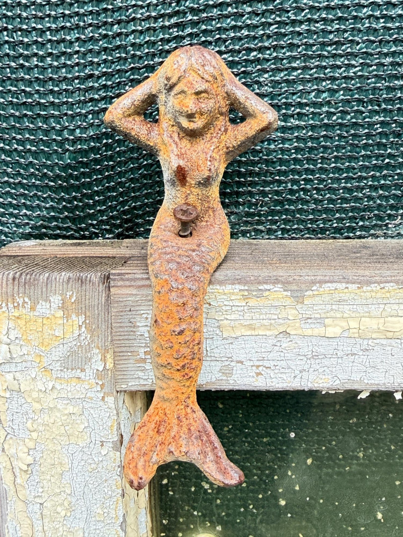 Lot # 158 - Outdoor Sea Life on Antique Window & Iron Mermaid