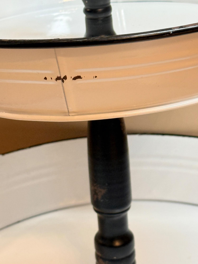 White & Black Enameled 2 Tier Farmhouse Server Stand