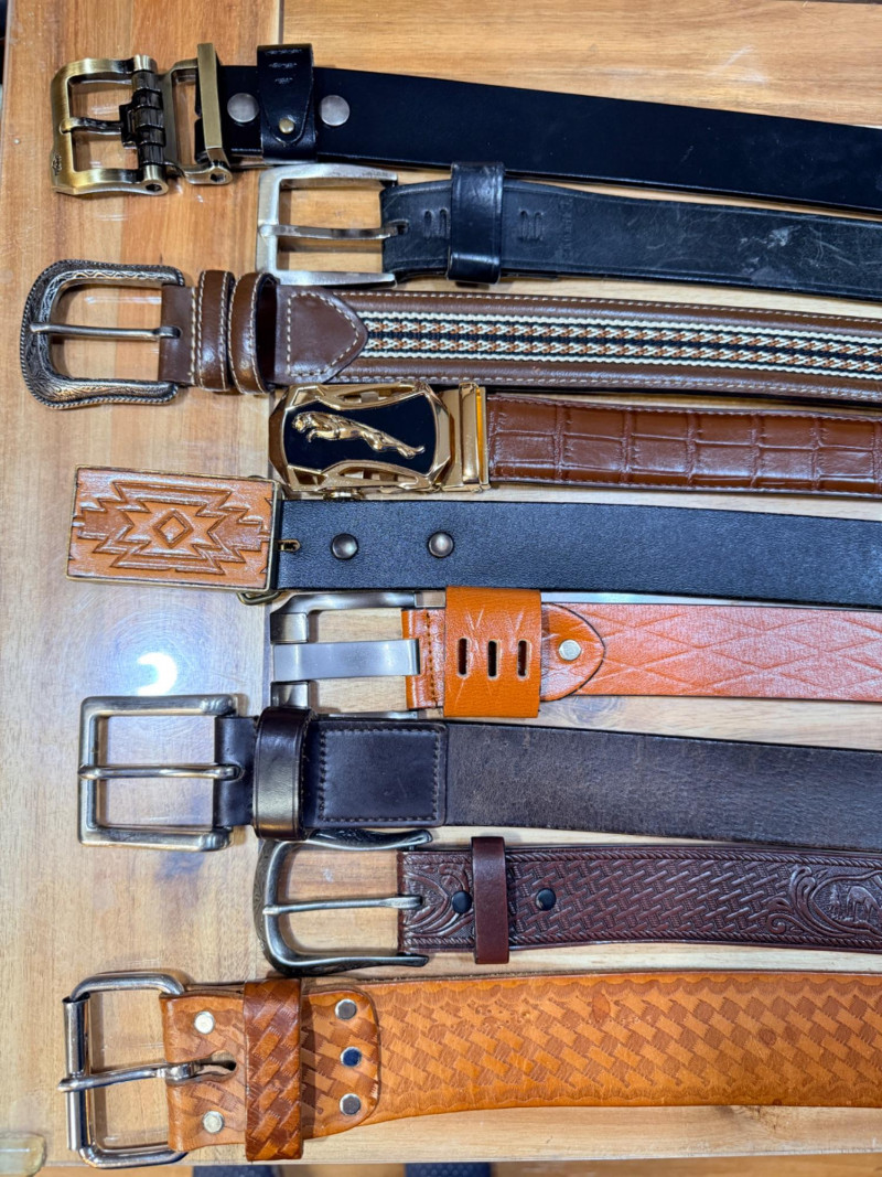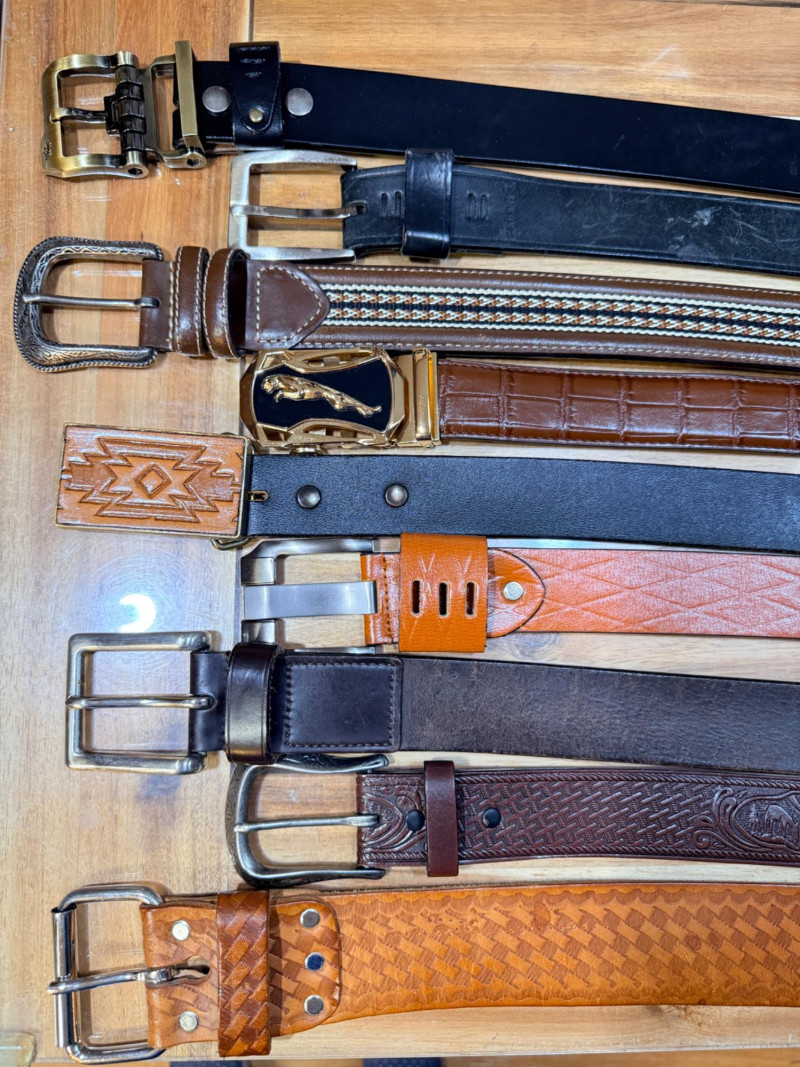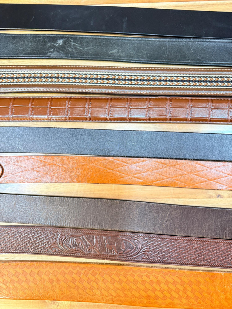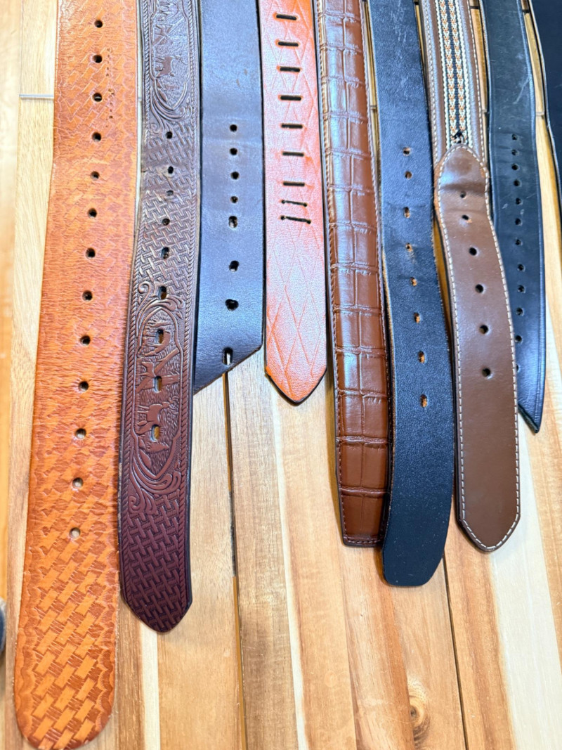 (9) Men’s Leather Belts - Sizes 42-46 Jaguar belt is reversible Husky, Carhartt and others