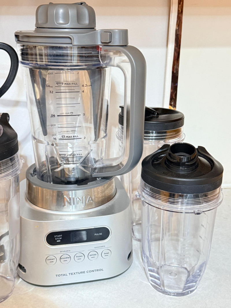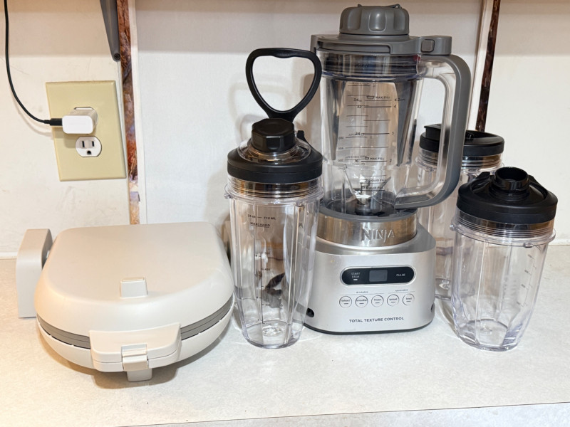 Ninja TWISTi High Speed Blender DUO Features a 1600-peak-watt motor and smart TORQUE technology designed to power through heavy loads without stalling. Auto-iQ Programs Includes 5 one-touch preset programs: Extract, Smoothie, Frozen, Spread, and Bowl. Comes with a 34-oz. high-speed pitcher and includes single-serve cups with spouts. Both tested and work. Model #SS151 Never used Bella Flip & Store Waffle Maker