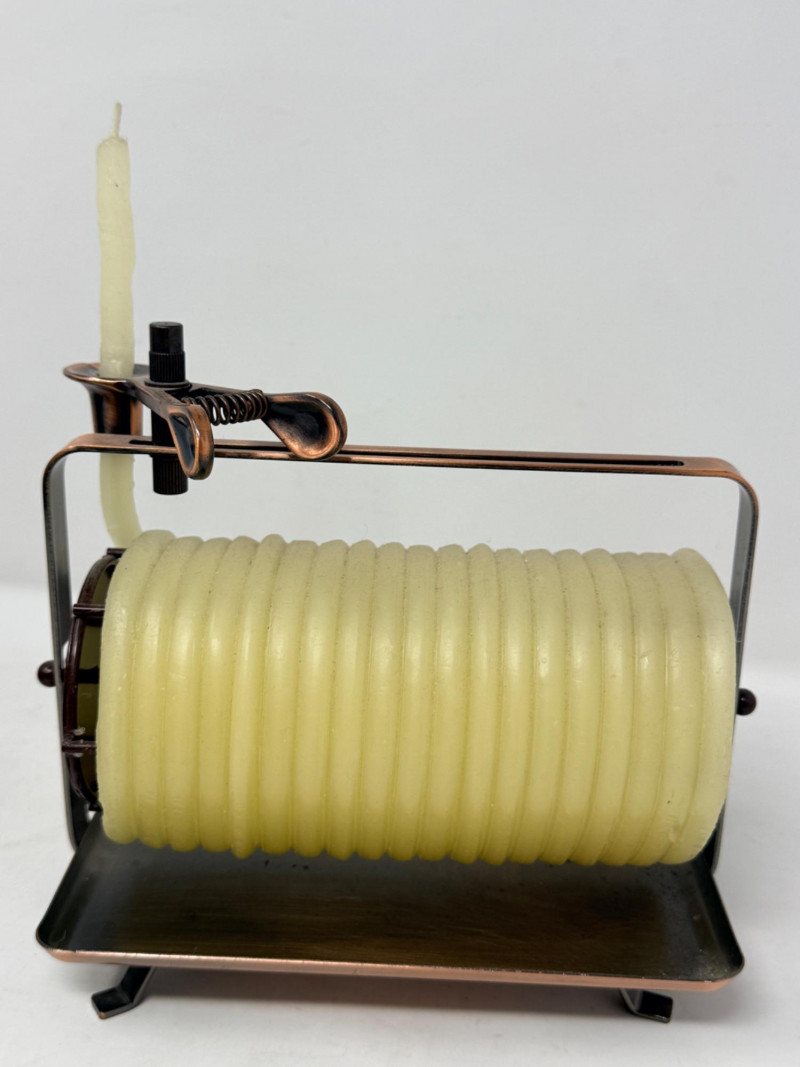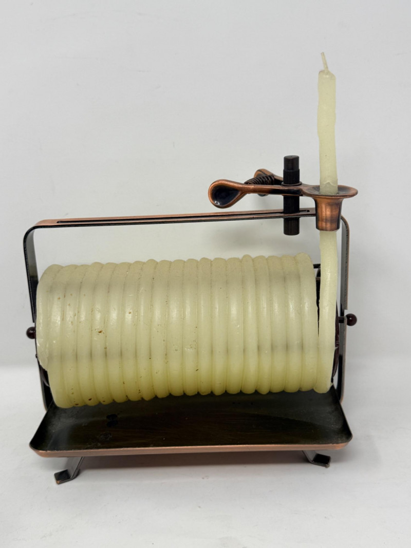 Bronze Tone Man/Woman Book Ends & Beeswax Spiral Candle Bronze tone poly stone bookends measure 5.5“ x 4.25“ x 8“ tall. Beeswax spiral candle measures 8“ x 4.5“ x 7.5“. Unused.