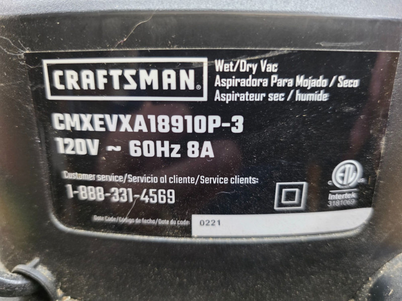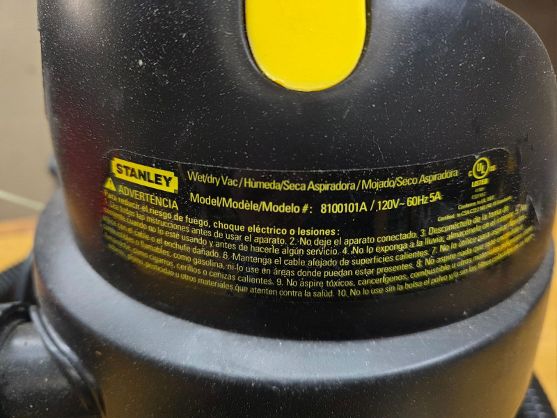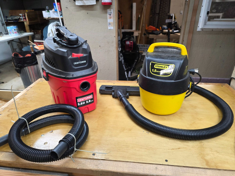 (2) Small Shop Vacuums: Craftsman & Stanley (1) Craftsman 3hp 3gallon Wet/Dry Vac Craftsman Model #CMXEVXA18910P-3 Includes hose (1) Stanley 1.5hp 1gallon Wet/Dry Vac Stanley Model #8100101A Includes hose with floor attachment Both Testef - Both Work!