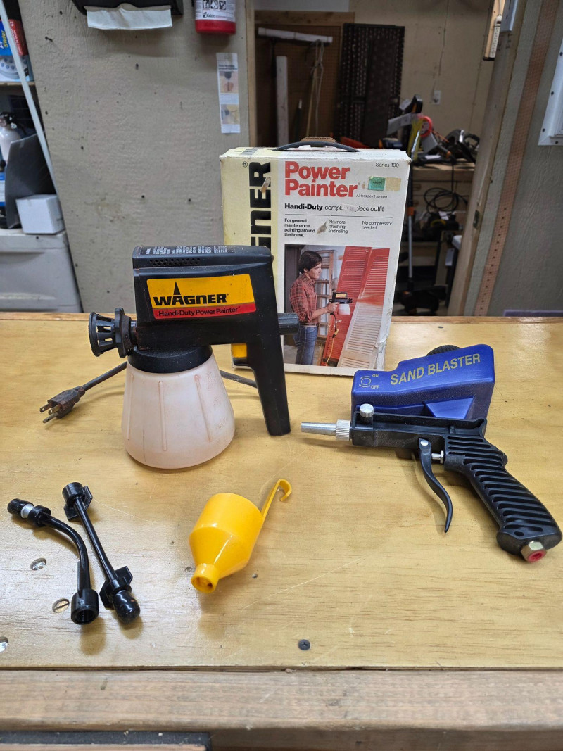 Wagner Power Painter & Abrasive Media Gun (1) Wagner 100-Series Power Painter Handi-Duty Includes accessories in original box (1) Abrasive Media Gun Looks to be unused! Gravity-fed Abrasive Size 46-100 Grit Tested - Powered On!