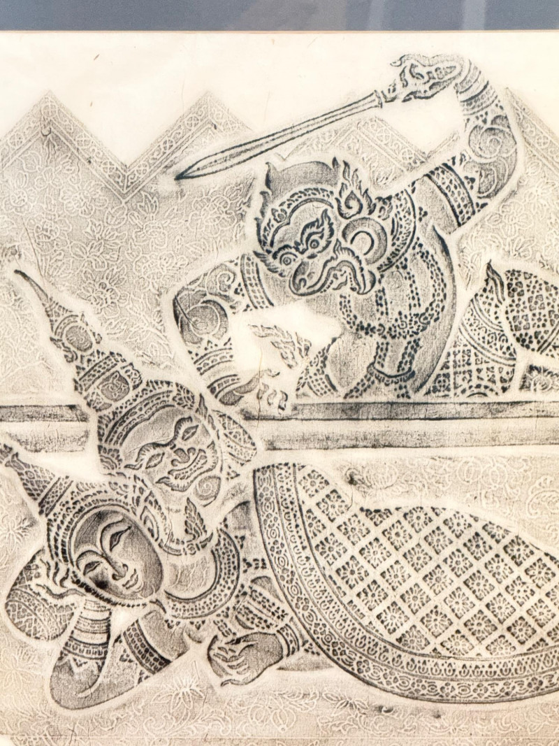 Lot # 5 - Scene of The Ramakien - A Vintage Thai Temple Rubbing