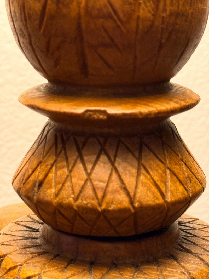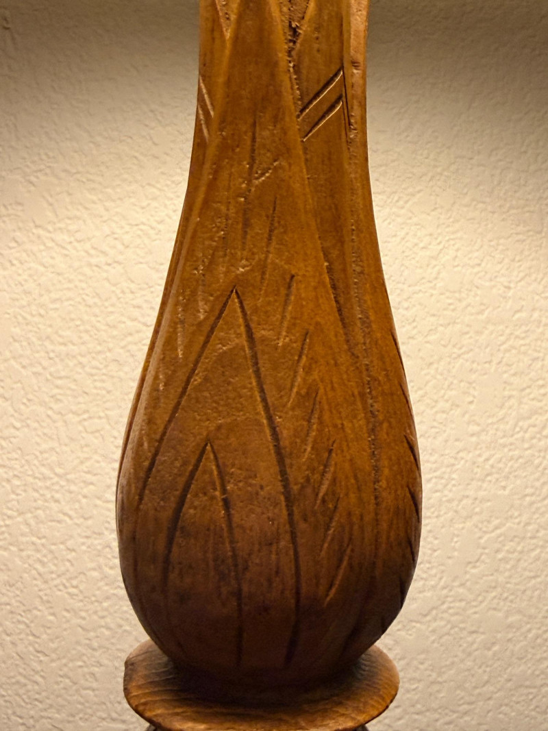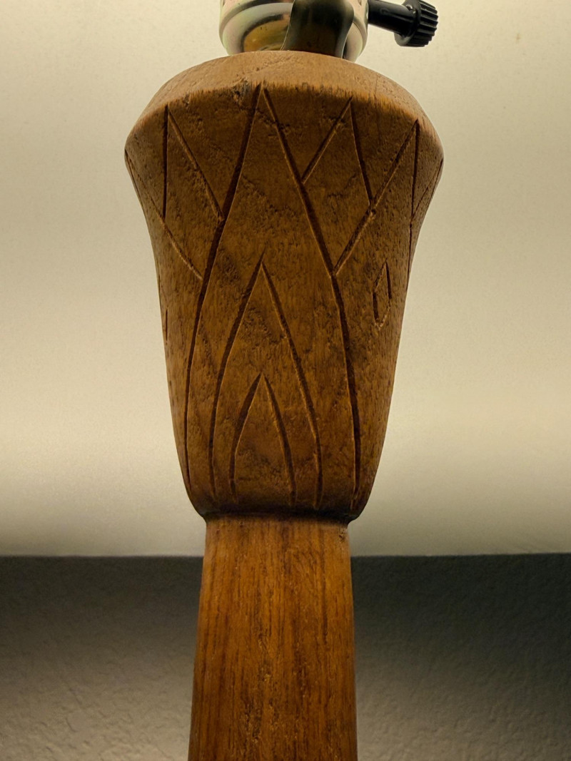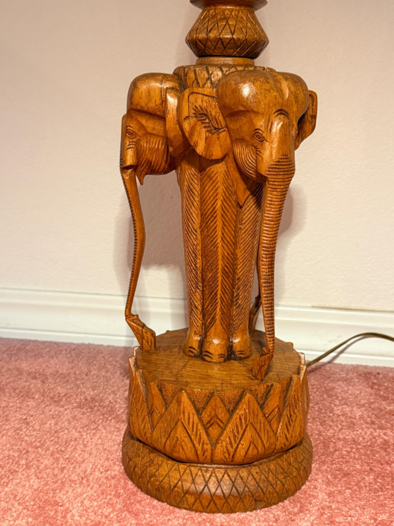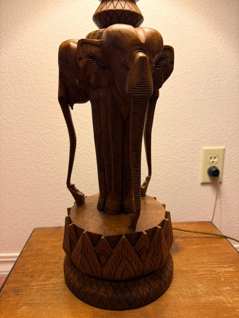 Lot # 11 - MCM Hand Carved Teak Elephant Trio Lamp #1