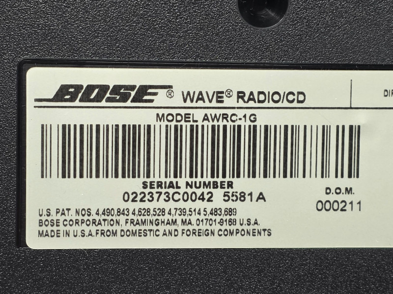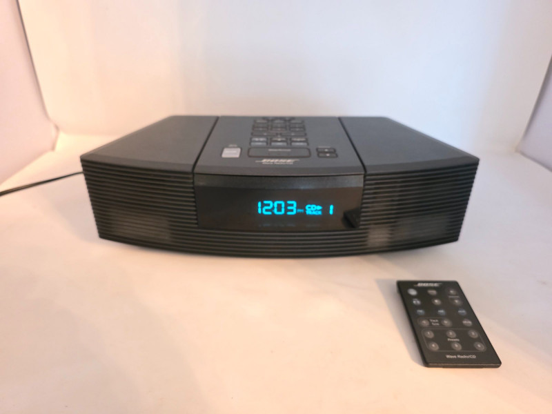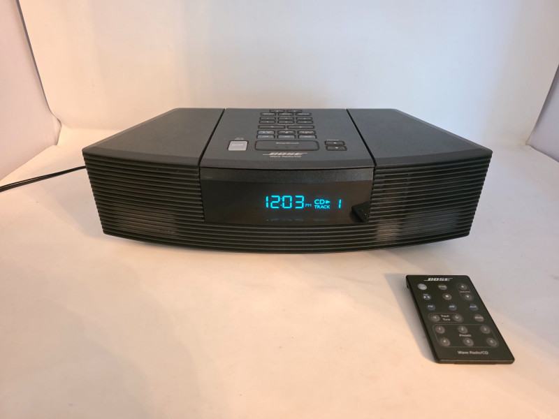 Bose Wave Radio/CD Player Bose Model #AWRC-1G 1st generation, top-loading CD player combined with an AM/FM tuner, released around 2000. Known for its compact design, it features proprietary waveguide technology for rich, room-filling sound, alongside a clock and alarm function Uses Bose's waveguide speaker technology for enhanced sound quality Top-loading, single-disc CD player compatible with CD, CD-R, and CD-RW Digital AM/FM radio with 6 presets per band Includes an auxiliary input (typically RCA/phono) for external devices and a headphone jack Large, easy-to-read display with alarm and clock functionality 9-volt battery backup ensures clock/alarm settings are maintained during power outages Includes power cord & remote Tested - Works! 4"T x 14"W x 8.5"D