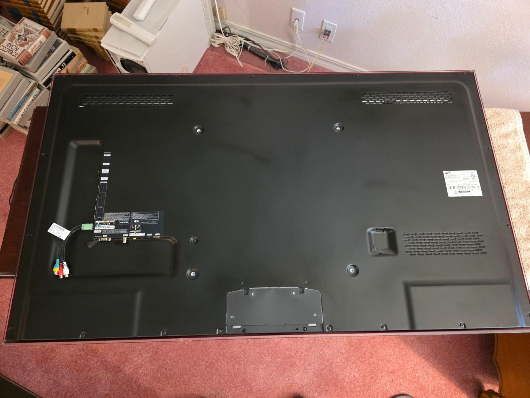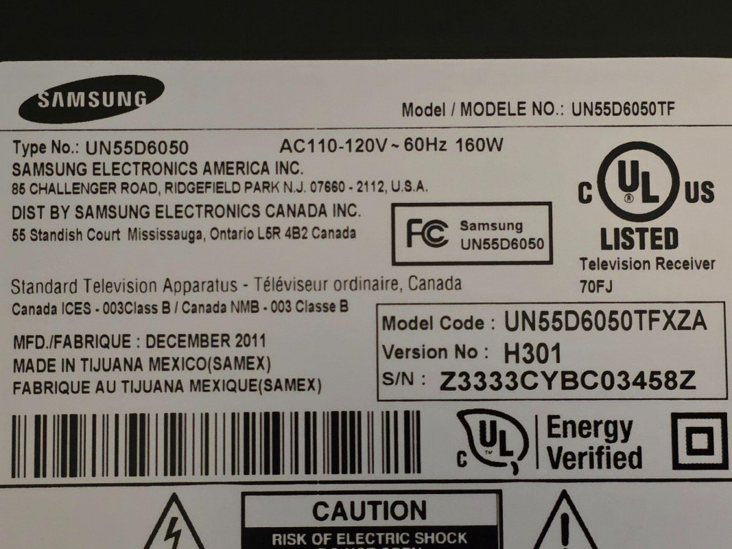 Samsung 55" 1080p LED Smart TV Samsung Model #UN55D6050TF Manufactured December 2011 Featuring 120Hz refresh rate (Auto Motion Plus), built-in Wi-Fi, and a slim "Touch of Color" bezel design Includes power cord, remote, and TV stand Tested- Works 30”Tx50.5”Wx1.5”D