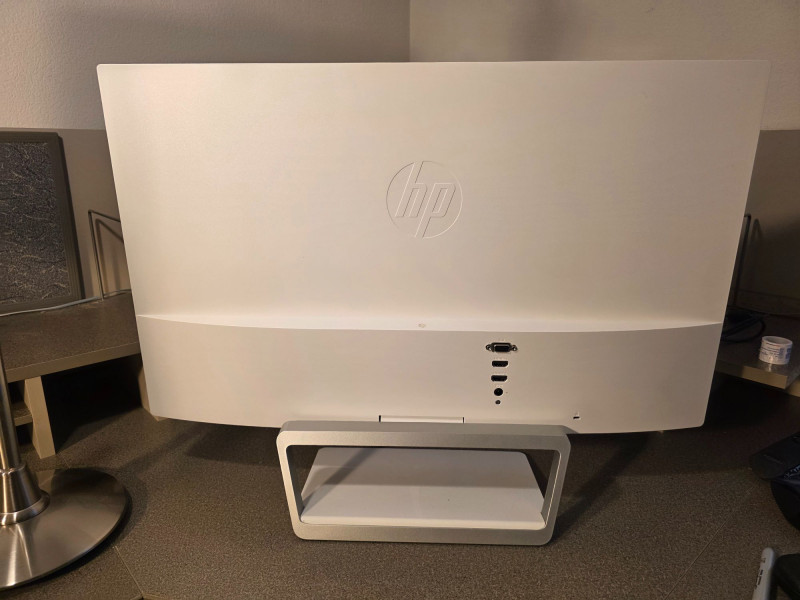 HP Pavilion 27xw IPS LED Backlight Monitor 27" Full HD (1920x1080) HP Model #V0N26A The HP Pavilion 27xw is a 27-inch IPS LED-backlit monitor featuring a 1920 x 1080 Full HD resolution, 16:9 aspect ratio, and Technicolor color certification Known for its sleek silver-and-white, ultra-thin design, it offers a 60Hz refresh rate, 8ms response time, 178° viewing angles, and dual HDMI/VGA inputs Key Details of the HP Pavilion 27xw: Screen Size: 27-inch (diagonal) IPS panel with LED backlight. Resolution: Full HD (@ 60Hz). Color & Clarity: Technicolor Color Certified with 10,000,000:1 dynamic contrast ratio and 250 cd/m² brightness. Connectivity: 2x HDMI (with HDCP support) and 1x VGA. Design: White and silver color scheme with an open-wedge stand; not wall-mountable. Viewing Angle: 178° horizontal/vertical. Response Time: 7ms - 8ms GtG Includes power cord, monitor stand and HDMI cable Tested - Works! 18"T x 24.5"W x 1.5"D