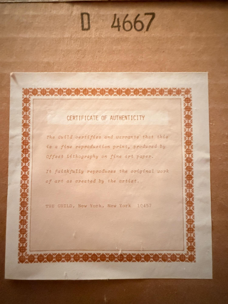 The Water-Lily Pond by Claude Monet The piece depicts the artist's own water garden at his home in Giverny, France. Monet, an avid horticulturist, designed the Japanese-style wooden footbridge himself and transformed the marshy ground into the serene pond seen in the painting. It is one of a series of 18 views of the wooden footbridge over the pond that he painted during the summer of 1899. Includes a Certificate of Authenticity from The Guild, New York, New York. Measures