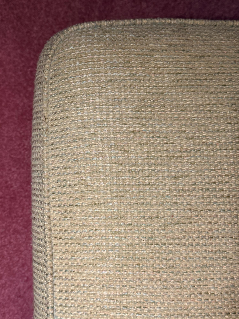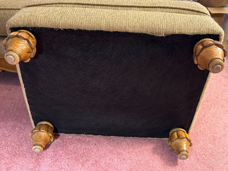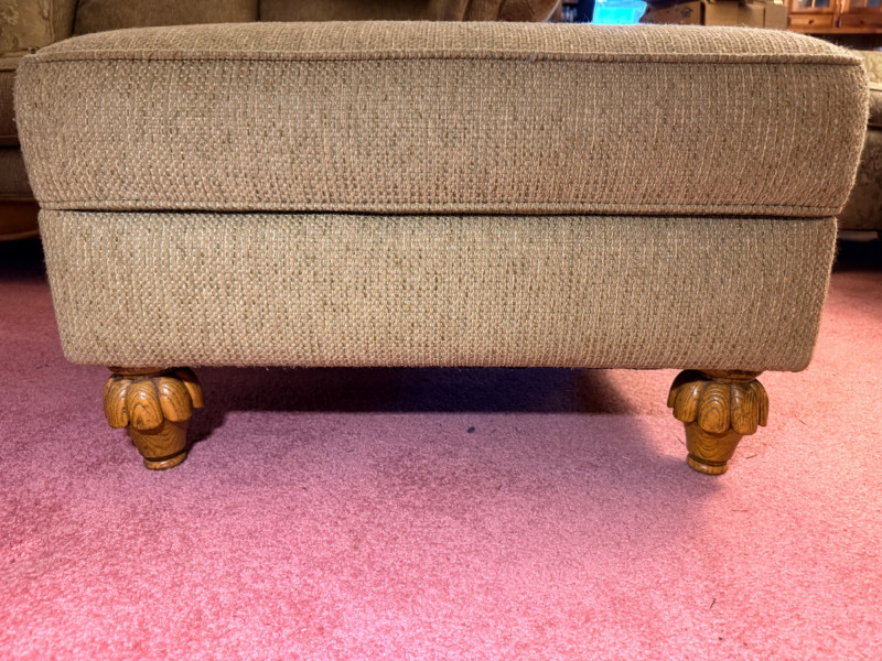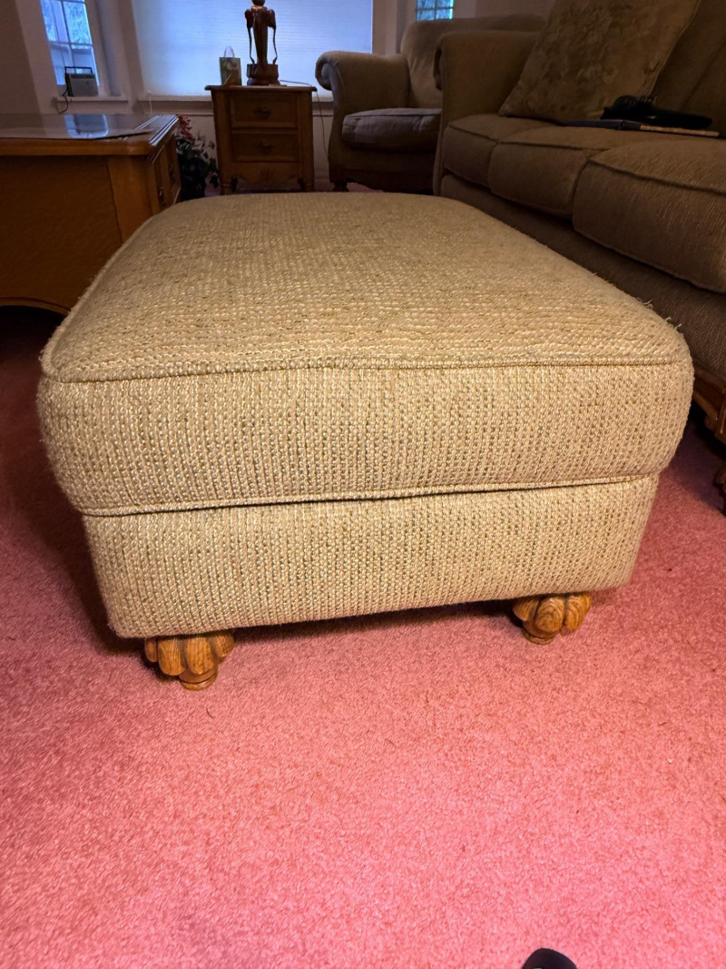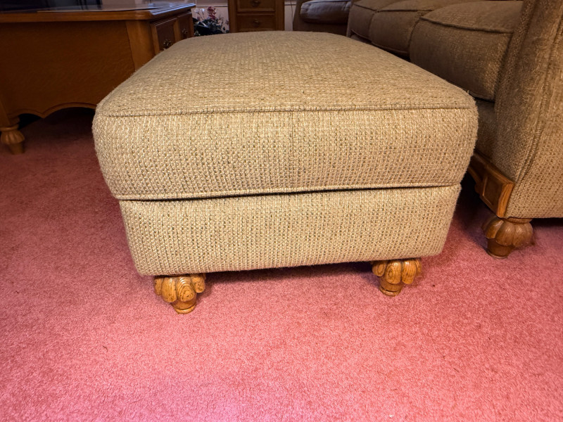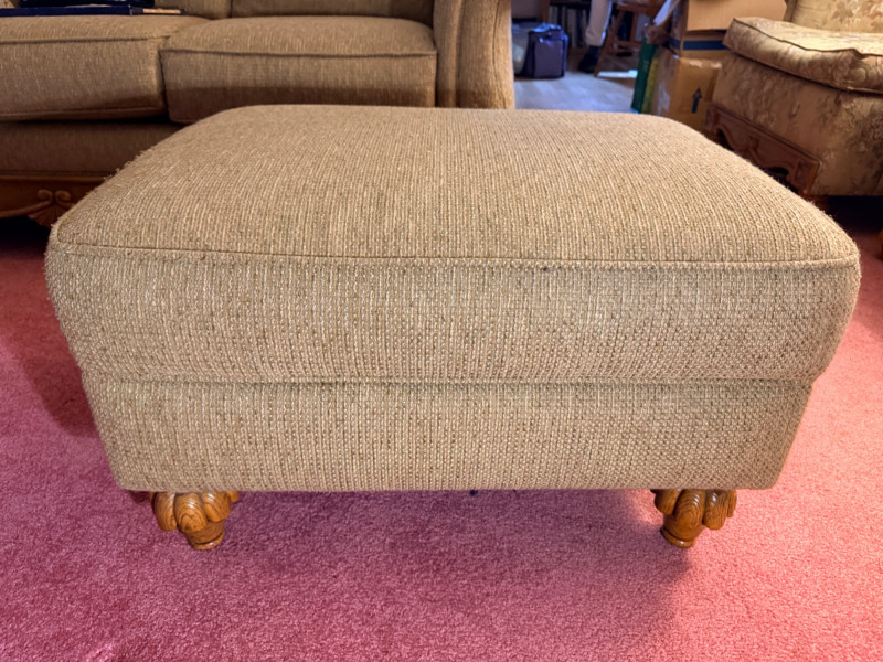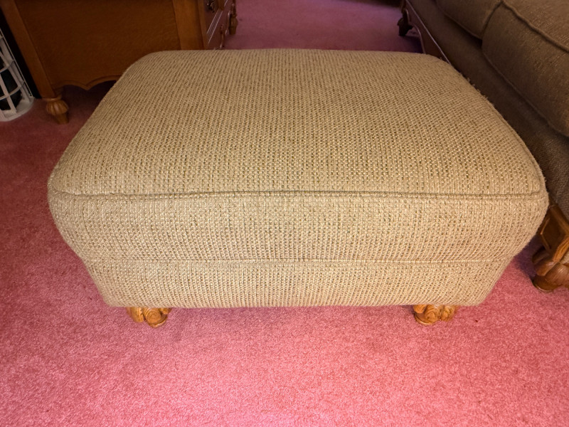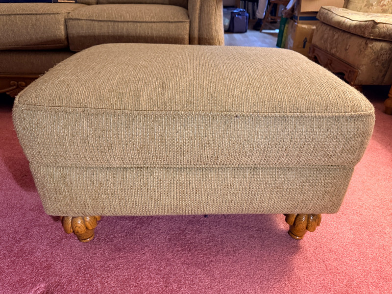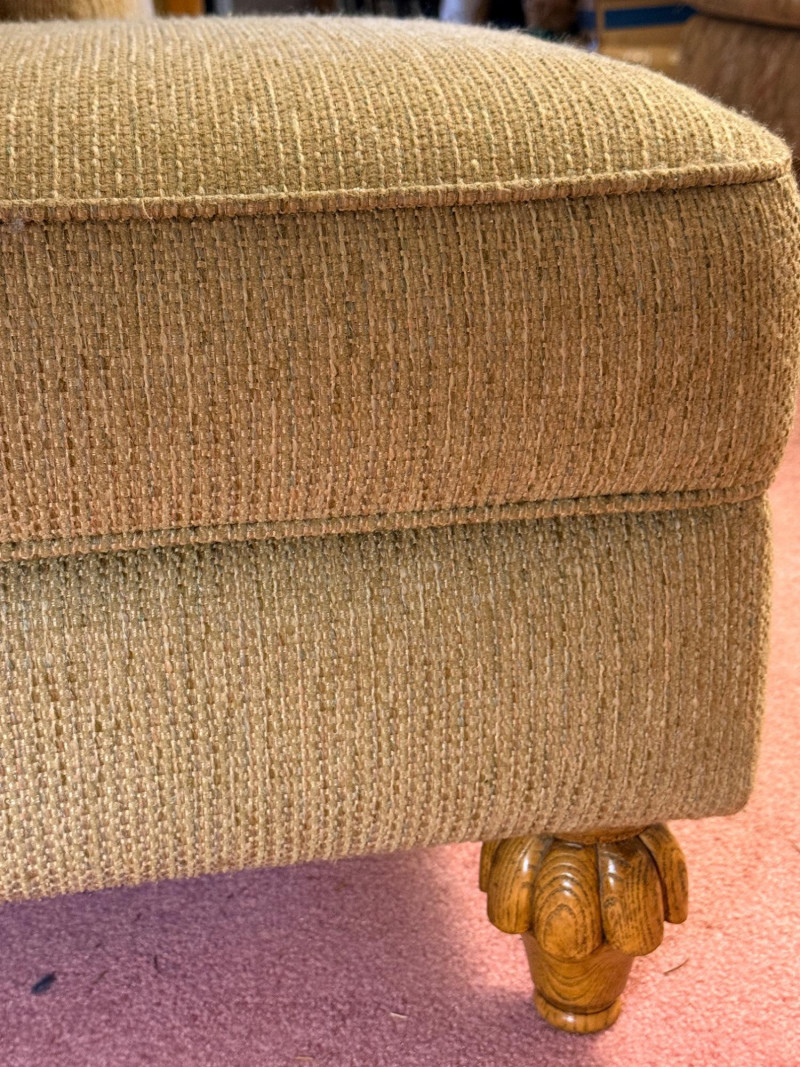 Bassett Furniture Ottoman Tan with green and off-white upholstery.