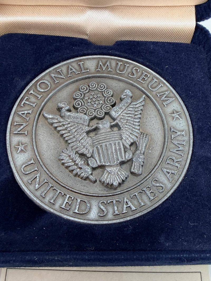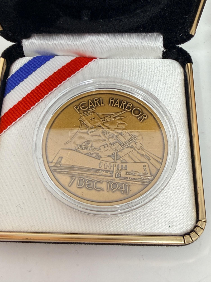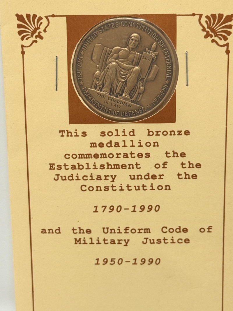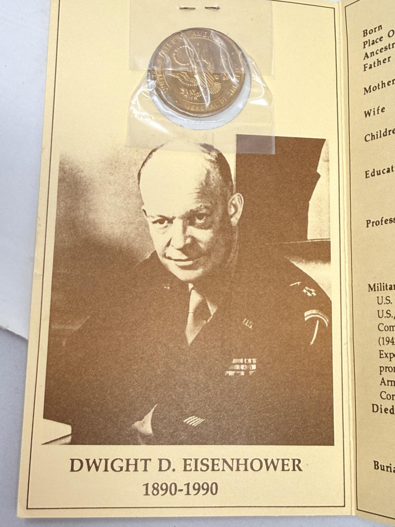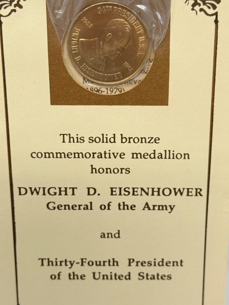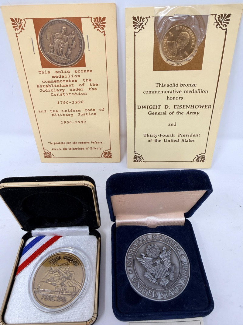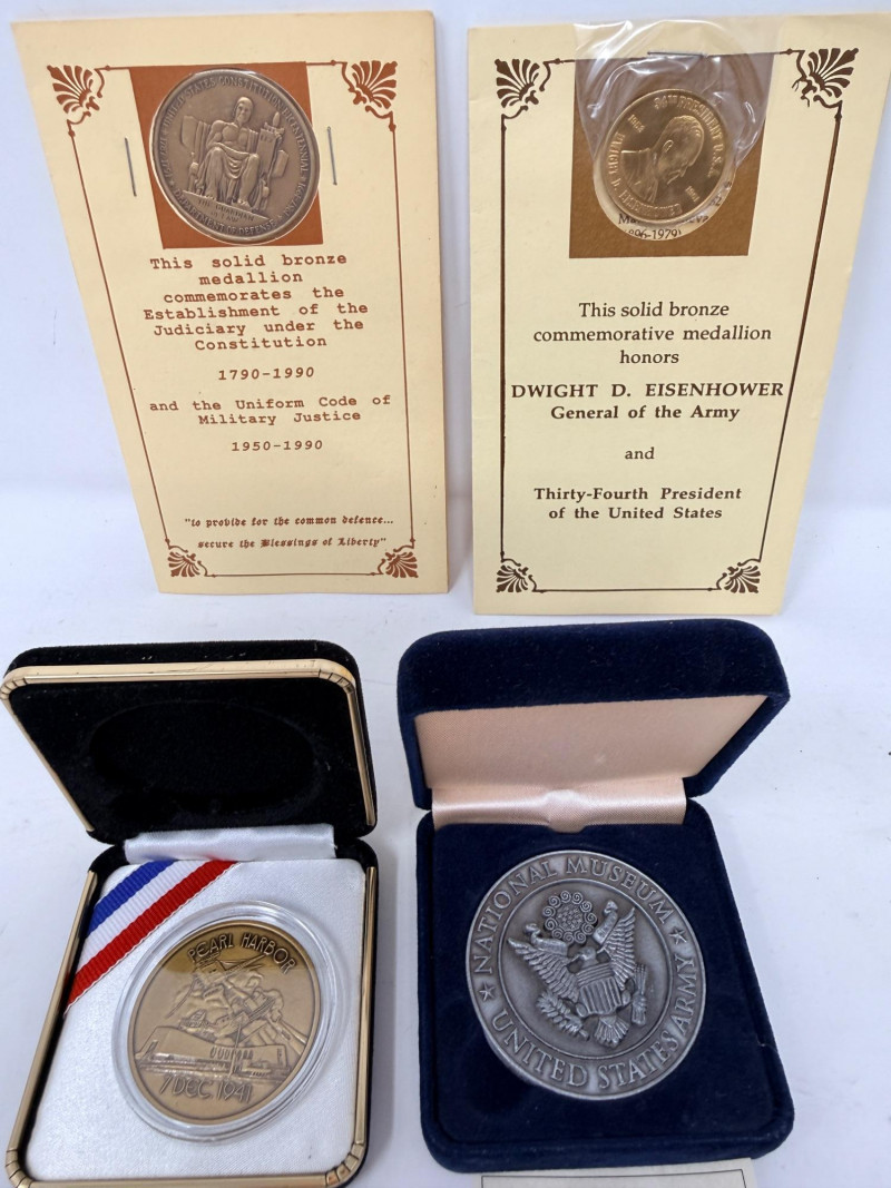 (4) Commemorative Military Medallions Solid bronze medallion commemorating the establishment of the judiciary under the constitution. Solid bronze commemorative medallion, honoring Dwight D Eisenhower general of the army and the 34th president of the United States. coin encased in plastic Arizona Memorial Museum Association Pearl Harbor, December 7, 1941. The national Museum of the United States Army founding sponsor medallion.