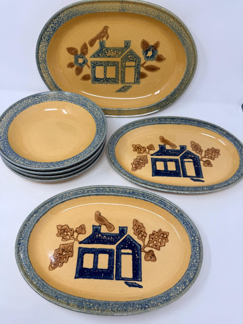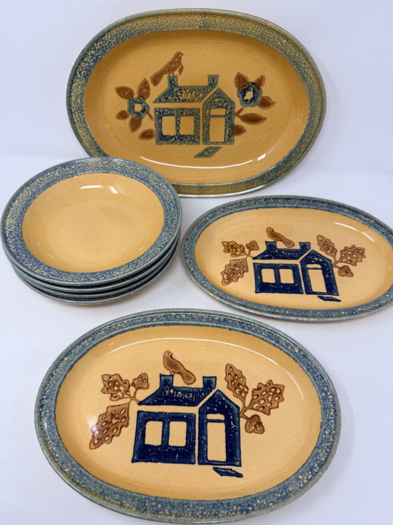 Pfaltzgraff America Platters and Bowls (4) Flanged soup bowls 8.5” (2) small platters 8.5”x12” Large platter 10”x14”