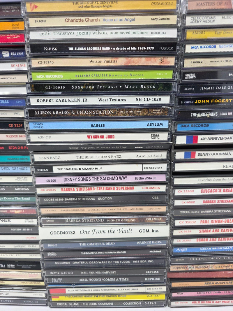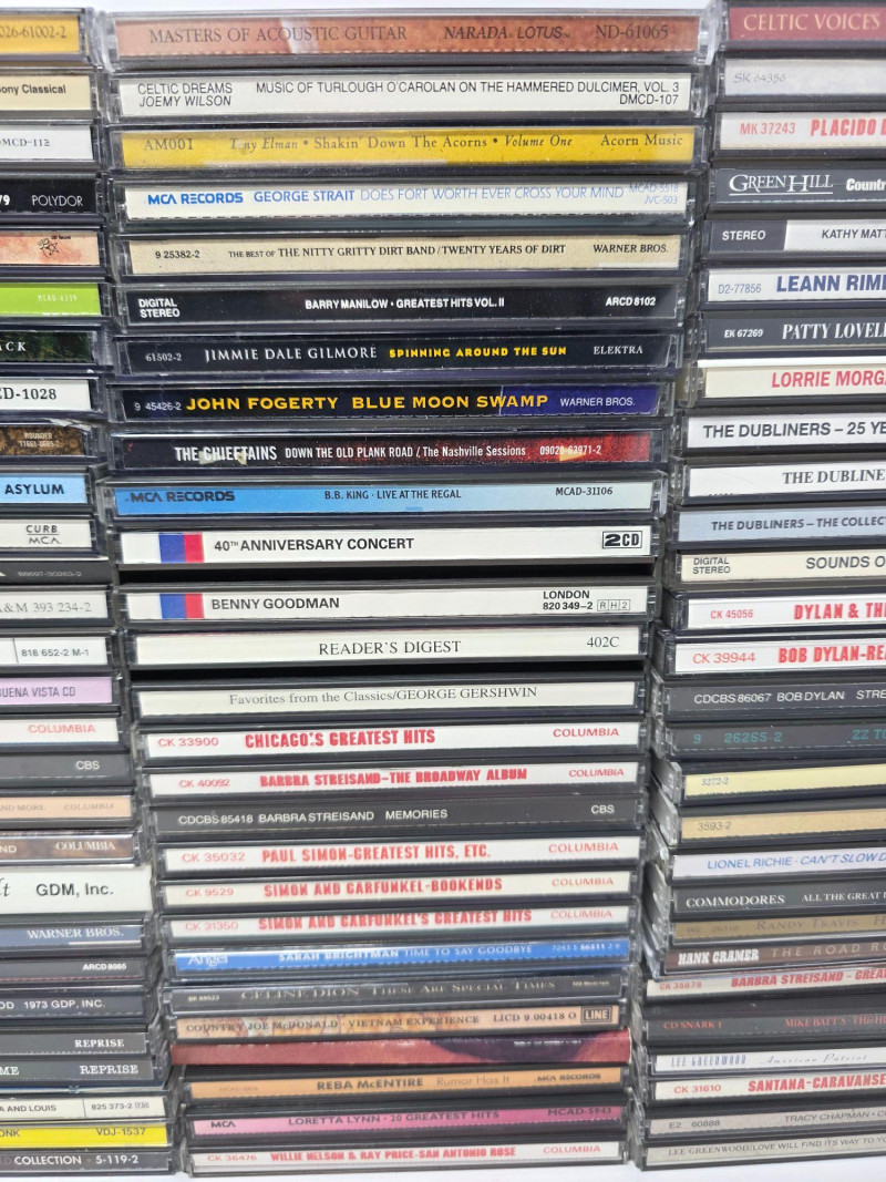 CD Music Collection #2 (168 CDs) Kathy Mattea, The Dubliners, Bob Dylan, ZZ Top, Lionel Richie, Barbra Streisand, Santana, Celine Dion, Simon & Garfunkel, Reba McEntire, Willie Nelson, Wilson Phillips, Eagles, Joan Baez, Grateful Dead, Kenny G, Josh Groban, Elton John, Tony Bennett, Don McLean and much, much more! 168 CDs in all!