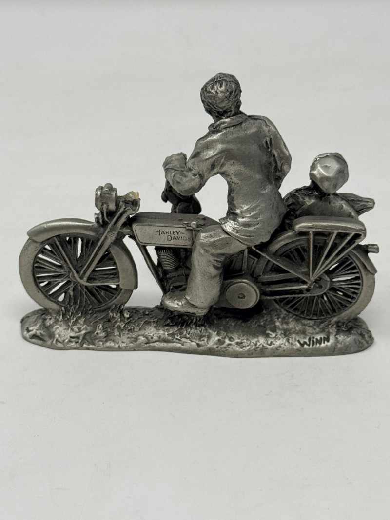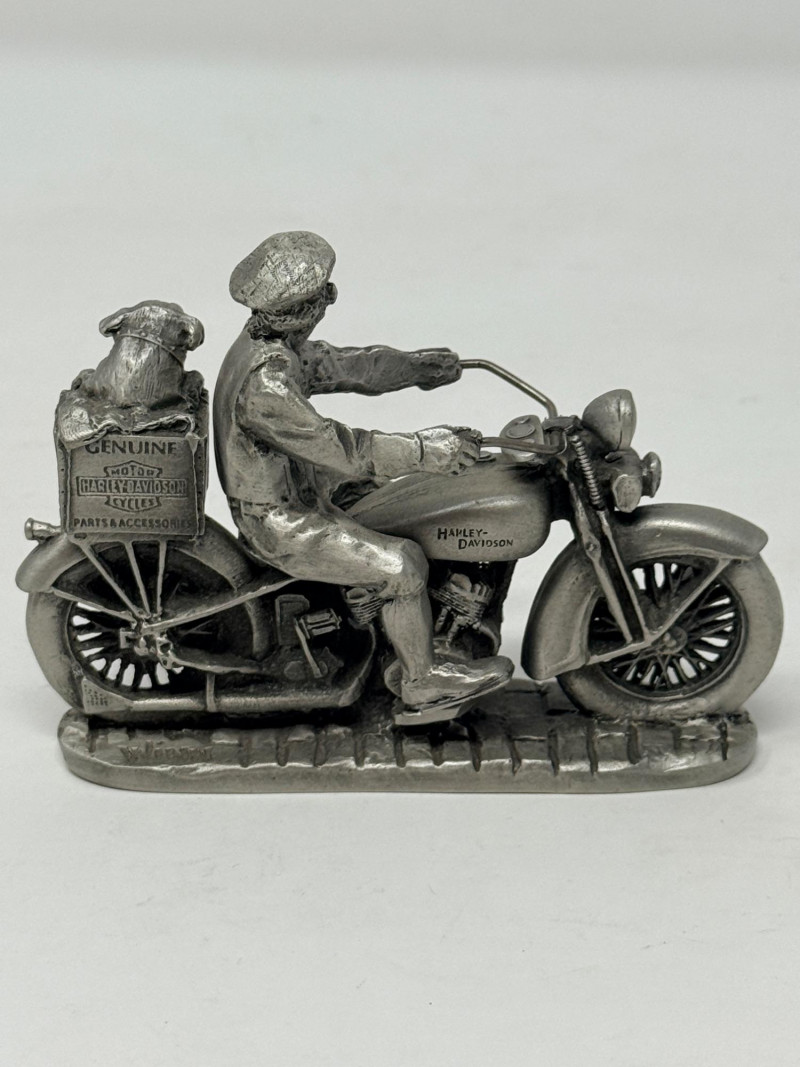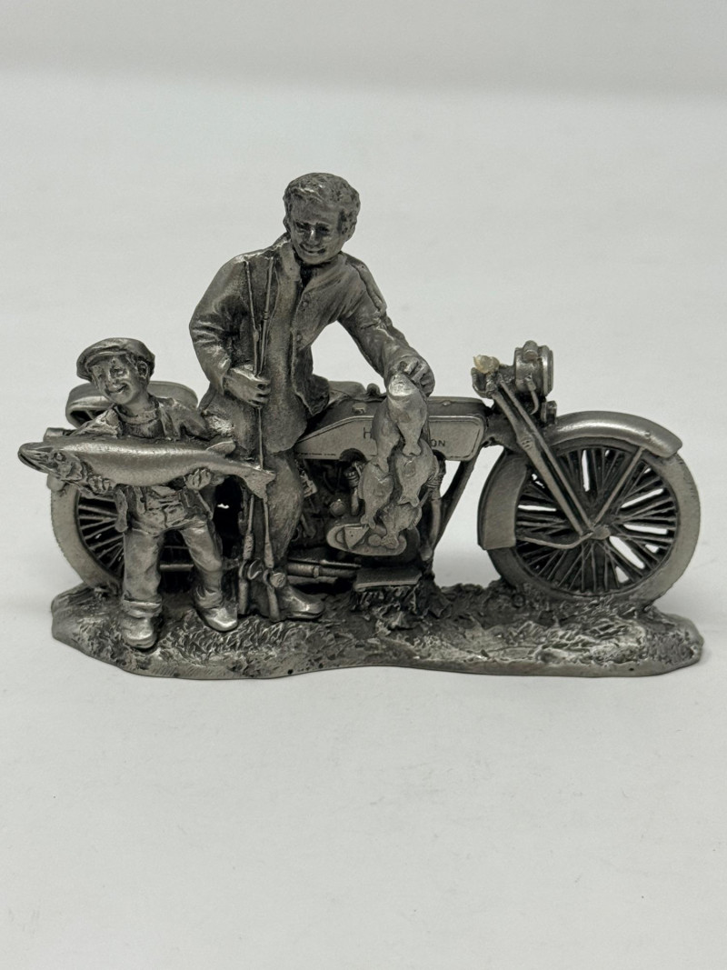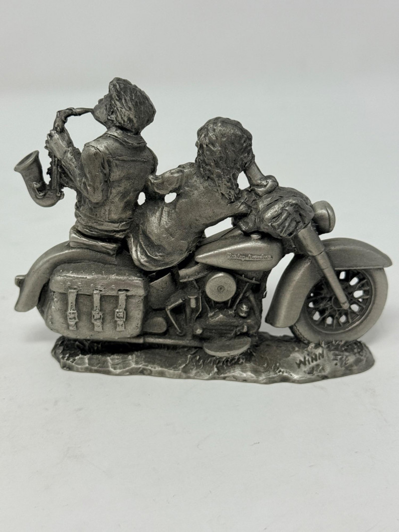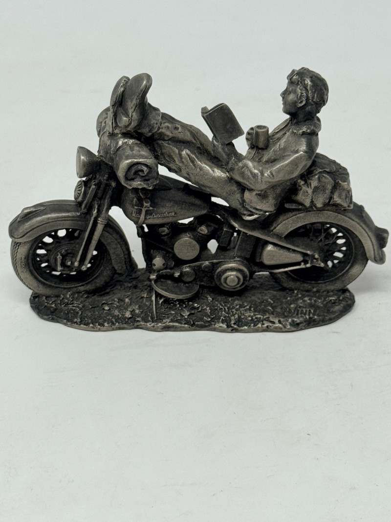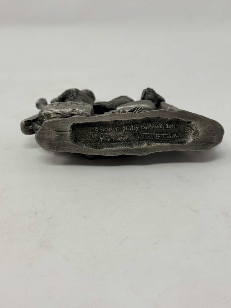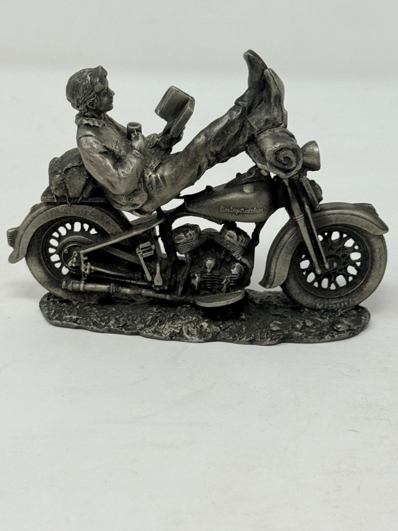 Set of 6 Harley Davidson Pewter Figurines by Skip Winn This collection includes A Good Day's Catch (the handlebars are missing) Rest Stop Bebop Coffee Break Keeping The Peace Trusty Friends Off Road Adventure 4-4.5” each