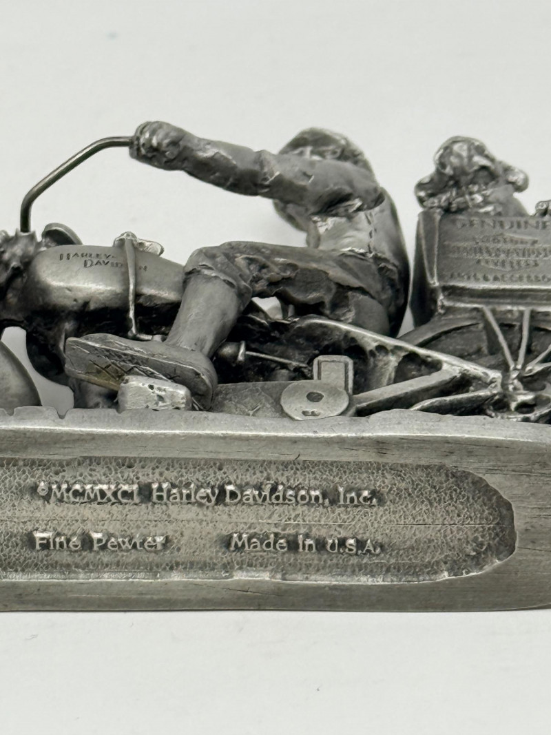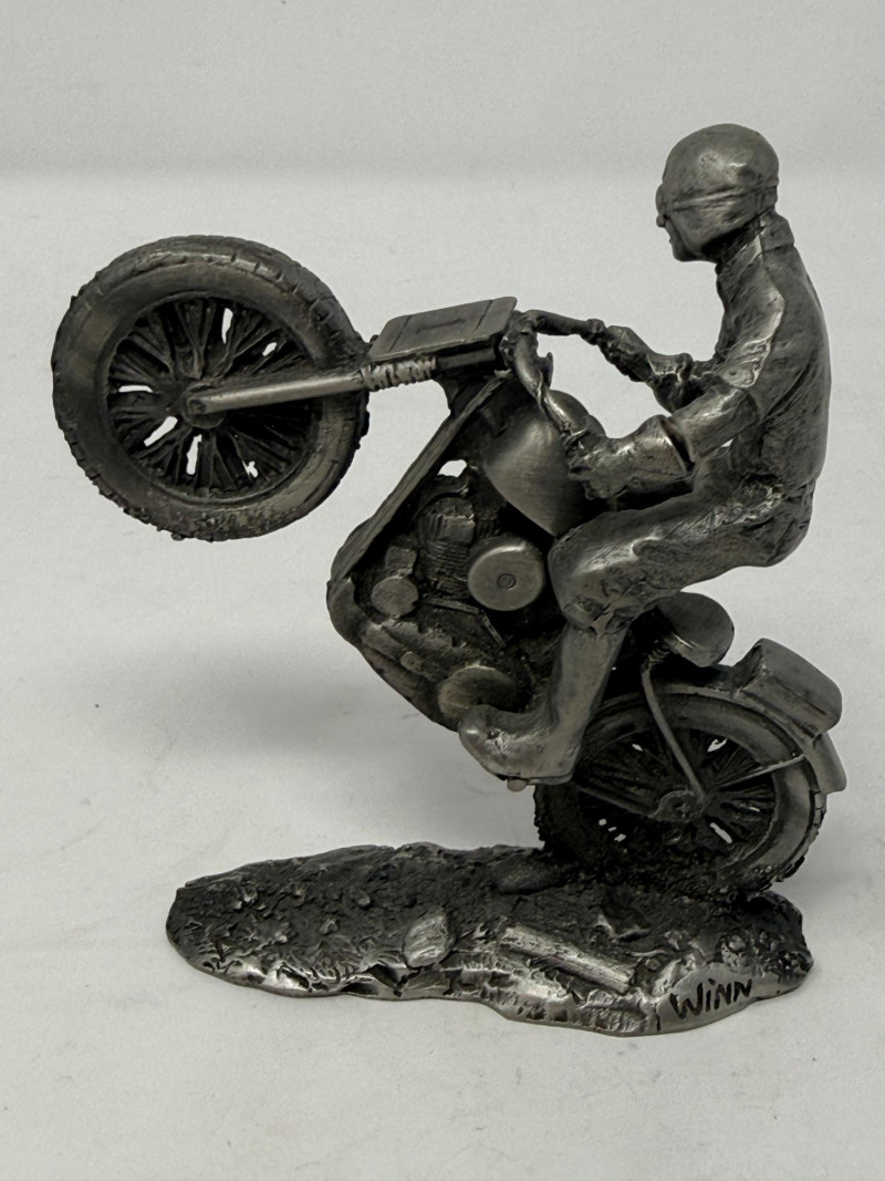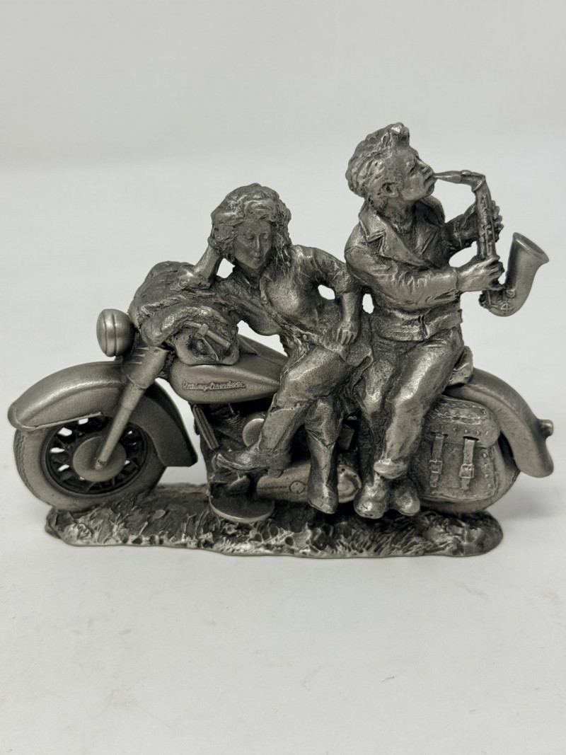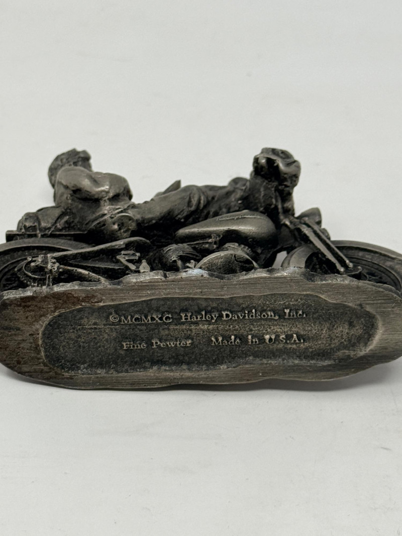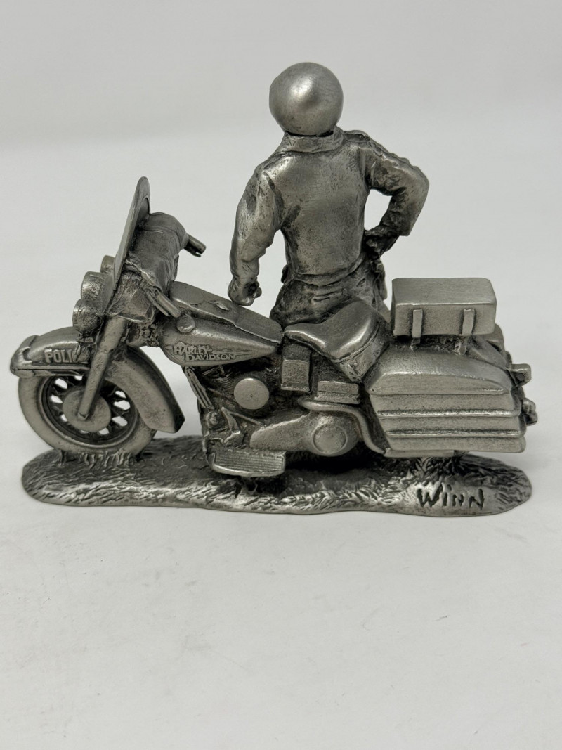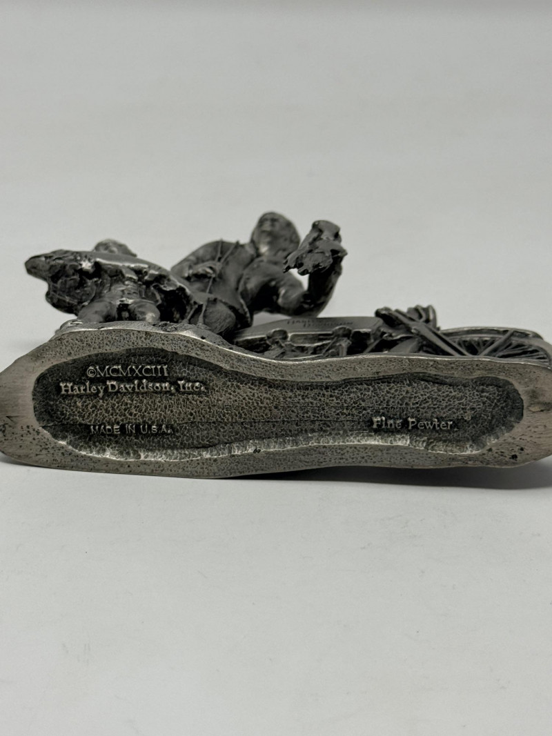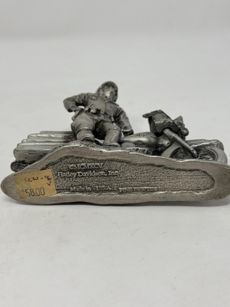 Set of 6 Harley Davidson Pewter Figurines by Skip Winn This collection includes A Good Day's Catch (the handlebars are missing) Rest Stop Bebop Coffee Break Keeping The Peace Trusty Friends Off Road Adventure 4-4.5” each