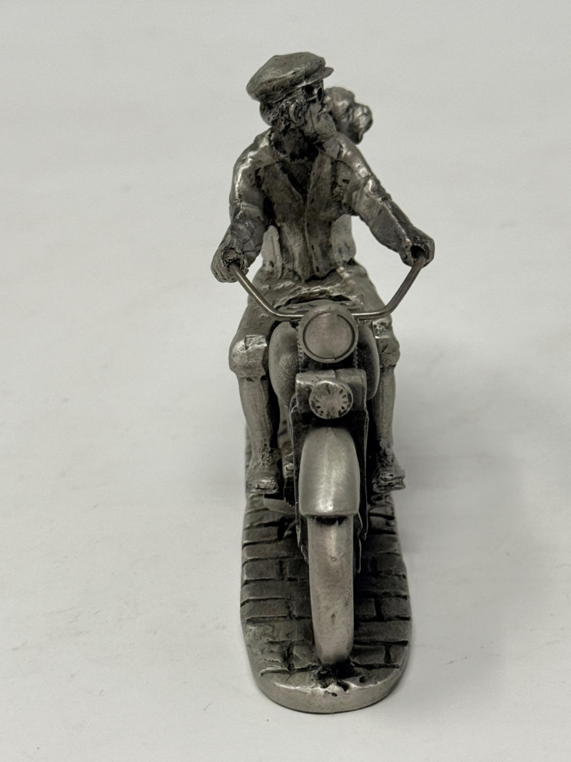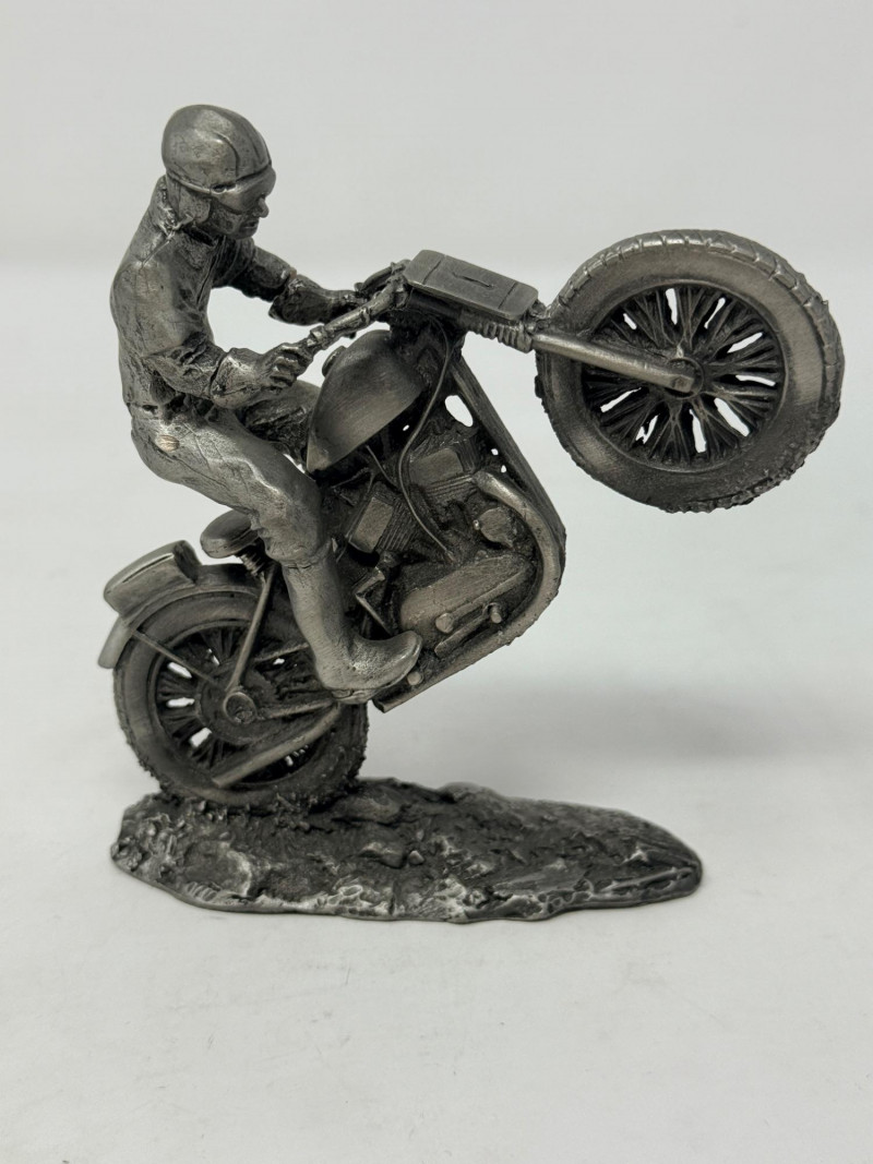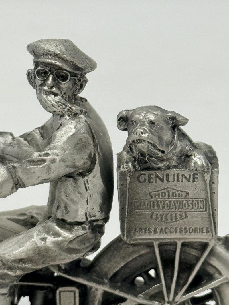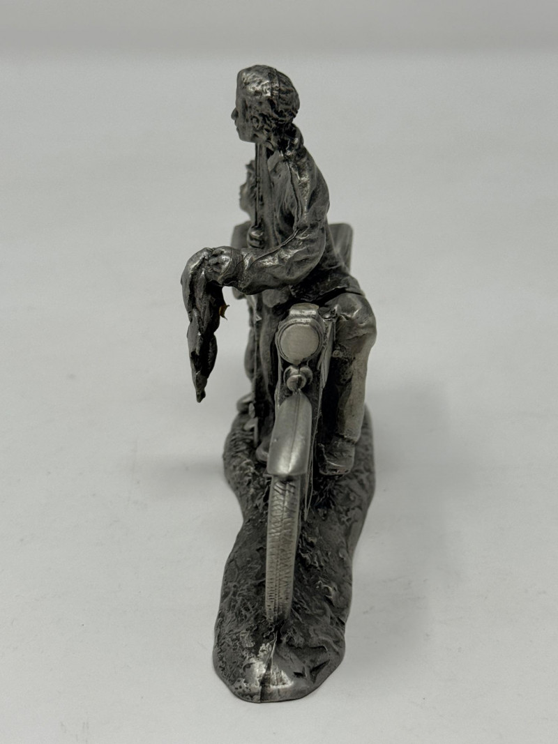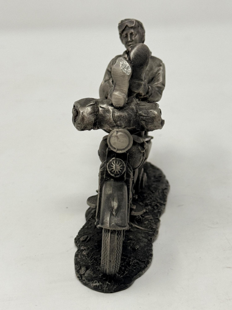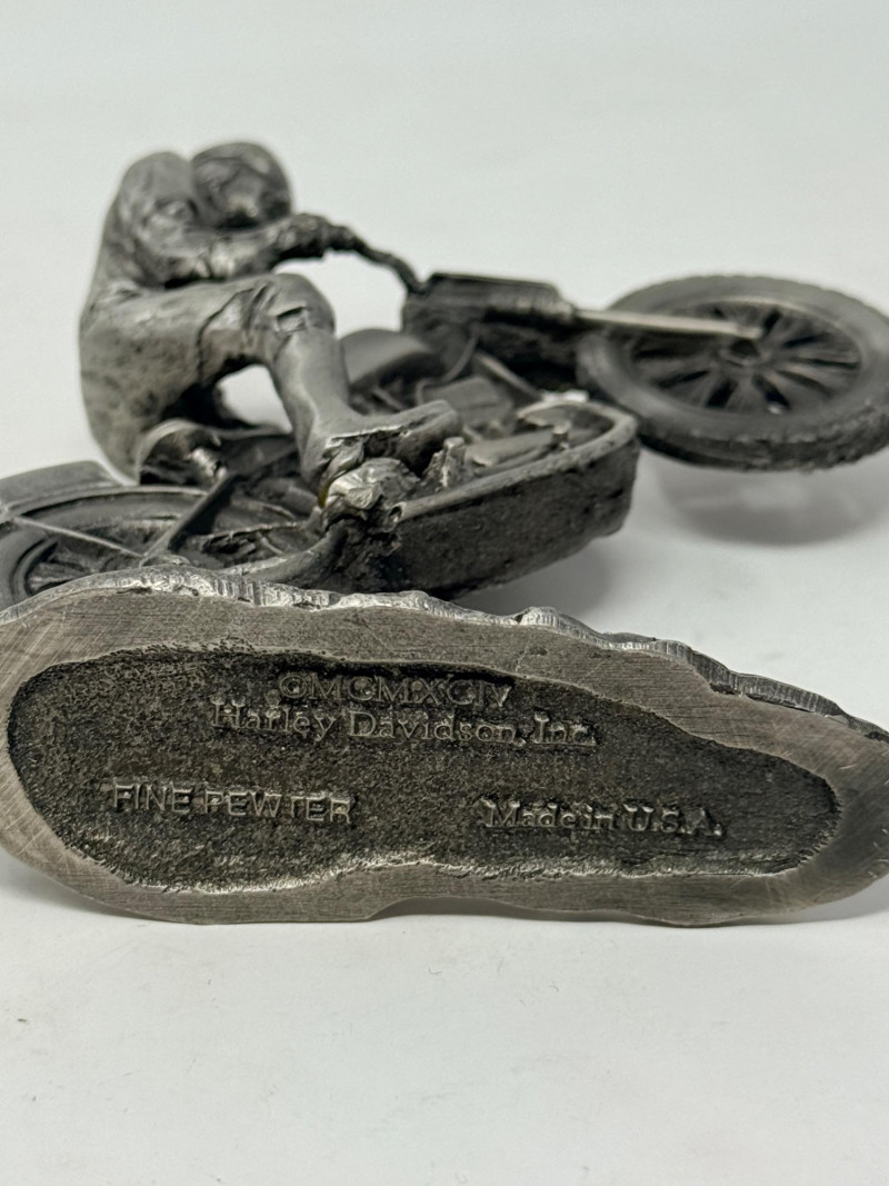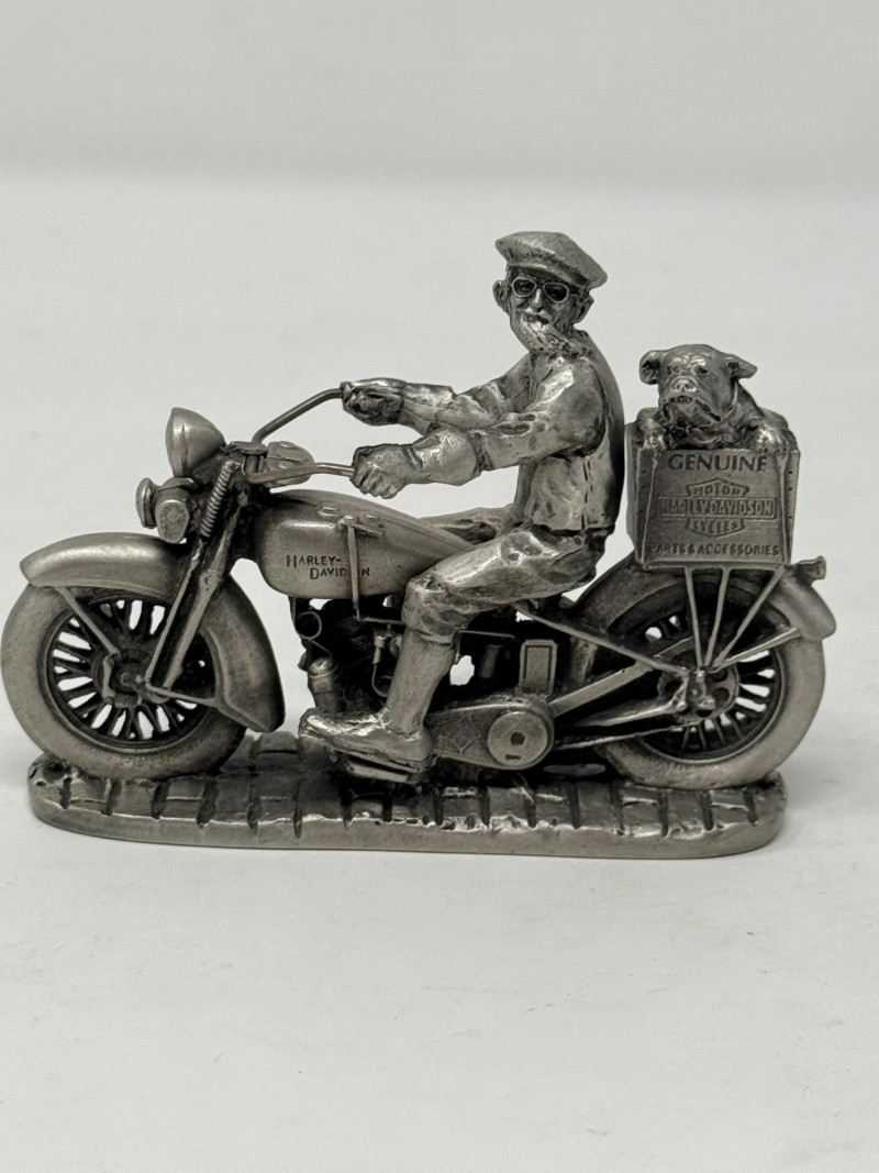 Set of 6 Harley Davidson Pewter Figurines by Skip Winn This collection includes A Good Day's Catch (the handlebars are missing) Rest Stop Bebop Coffee Break Keeping The Peace Trusty Friends Off Road Adventure 4-4.5” each