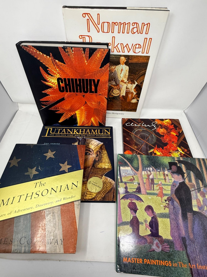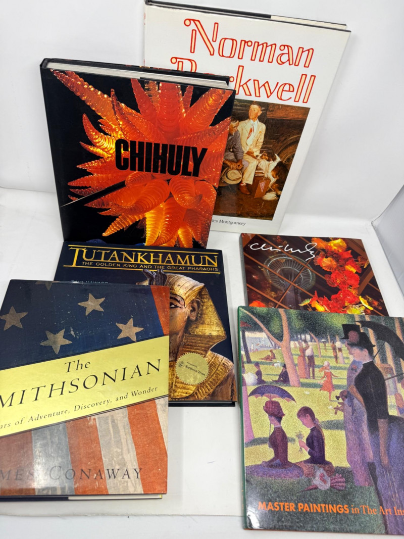 (6) Coffee Table Books Chihuly Garden and Glass Norman Rockwell Chihuly Second Edition revised and expanded The Smithsonian 150 Years of Adventure, Discovery and Wonder