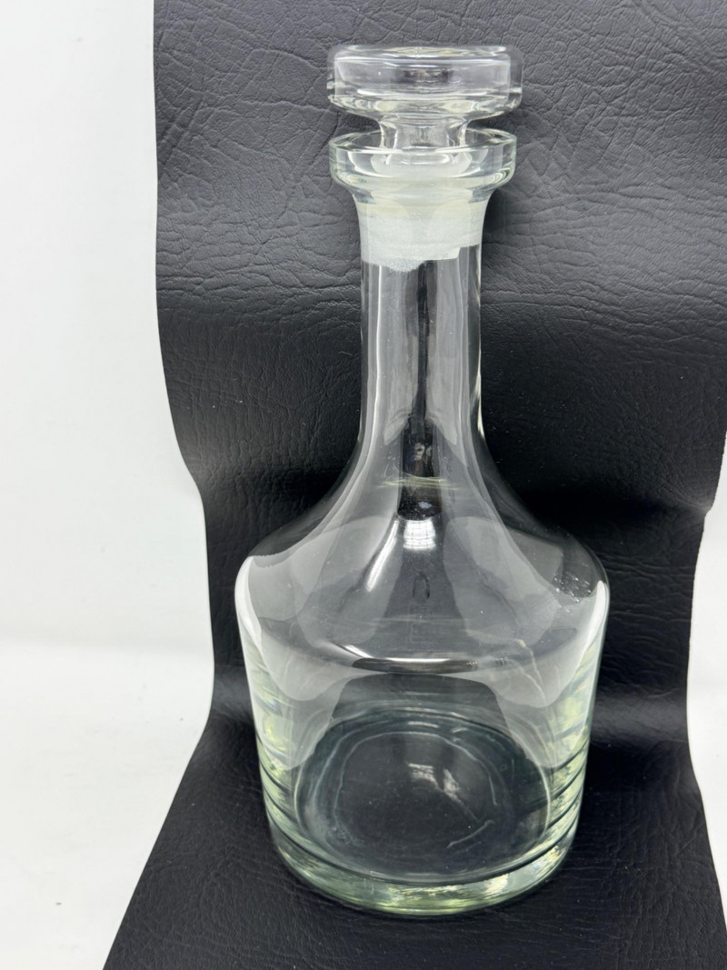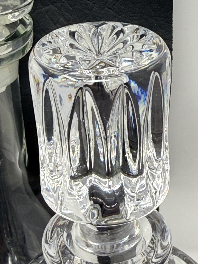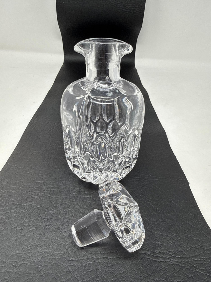 Large crystal decanter with vertical fluting is 4”x11”