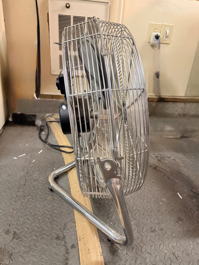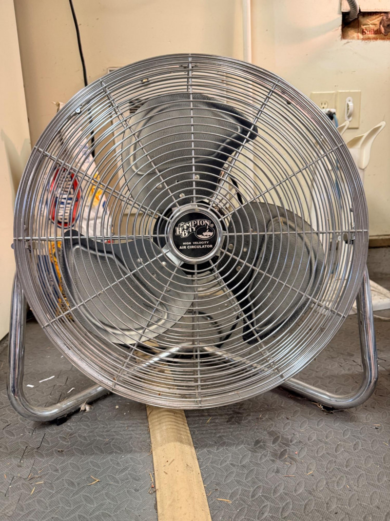 Hampton Bay Metal Cage Floor Fan 3 speed tilt fan 24”x24”x12” Tested, blows!