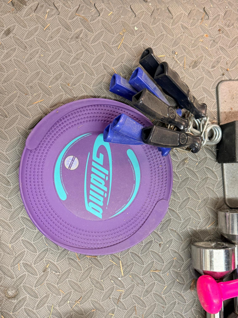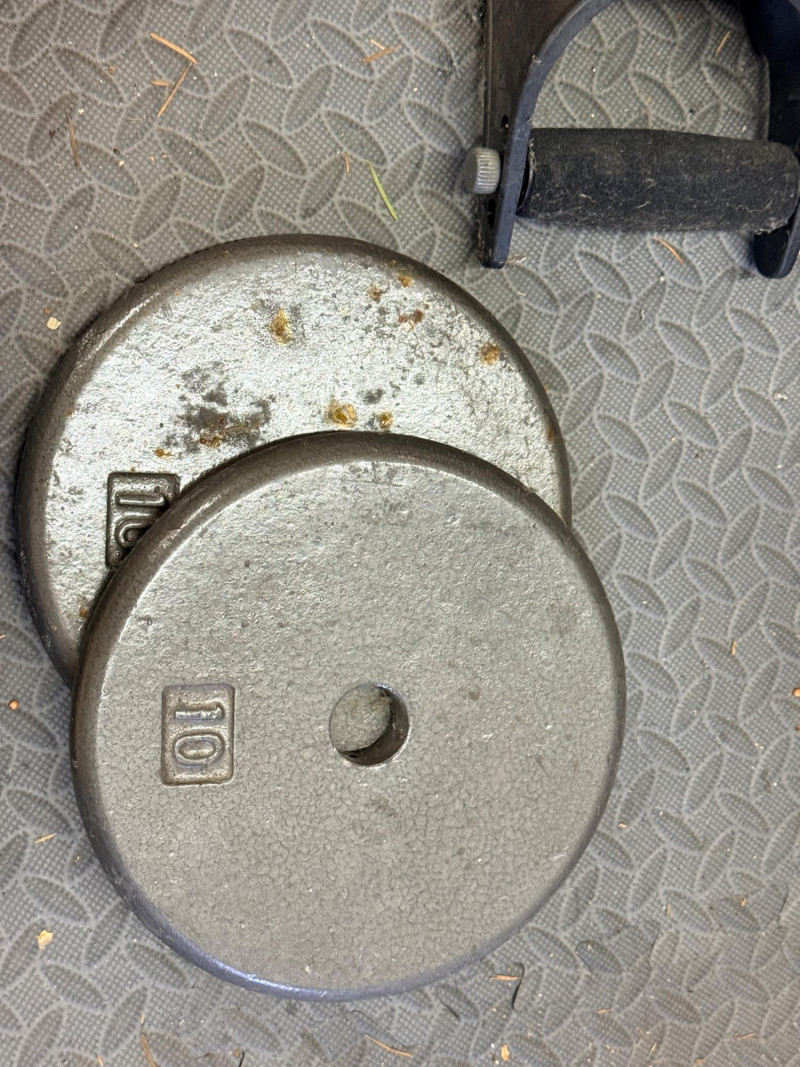 Weight bar with (2)10 and 5lb weights, (1) 3 lb weight