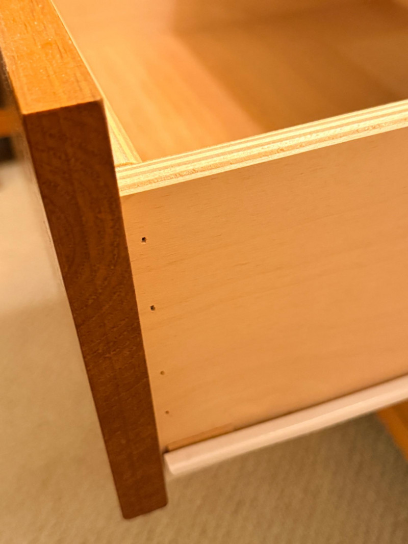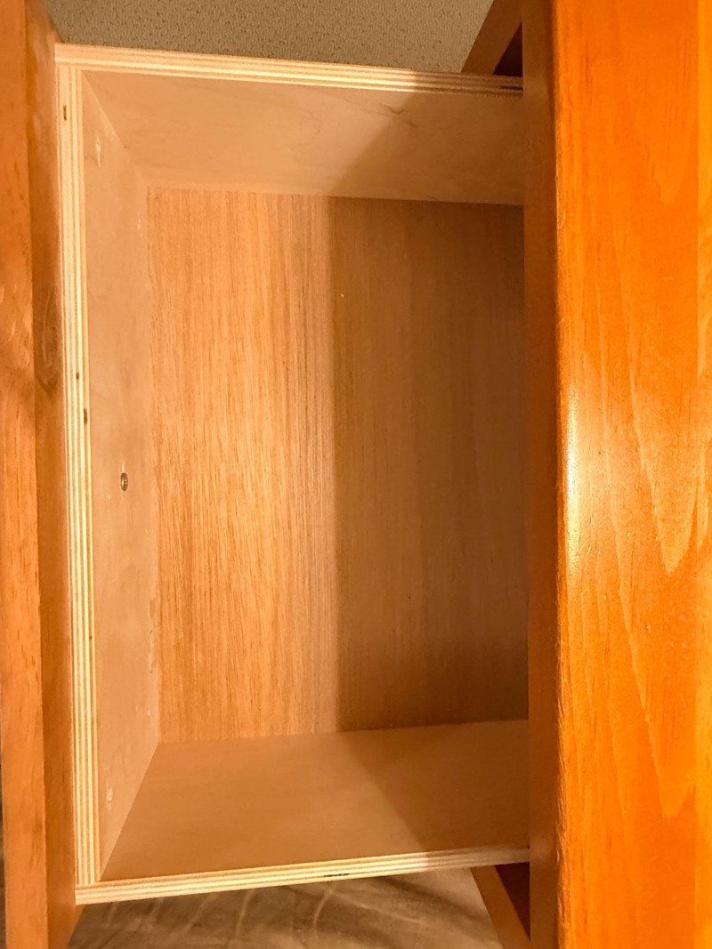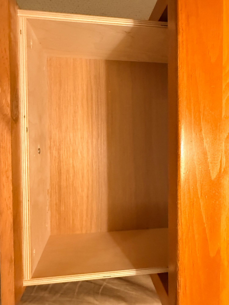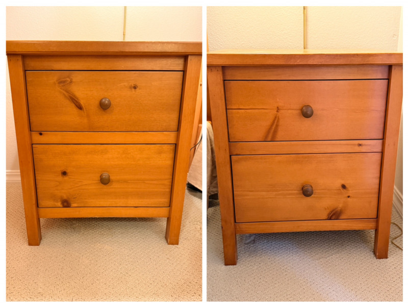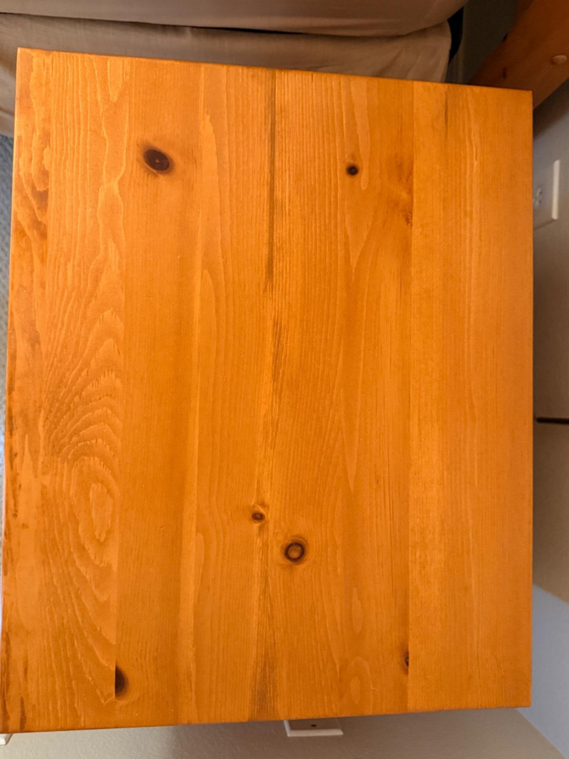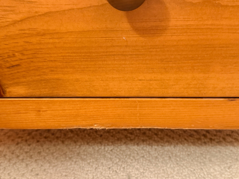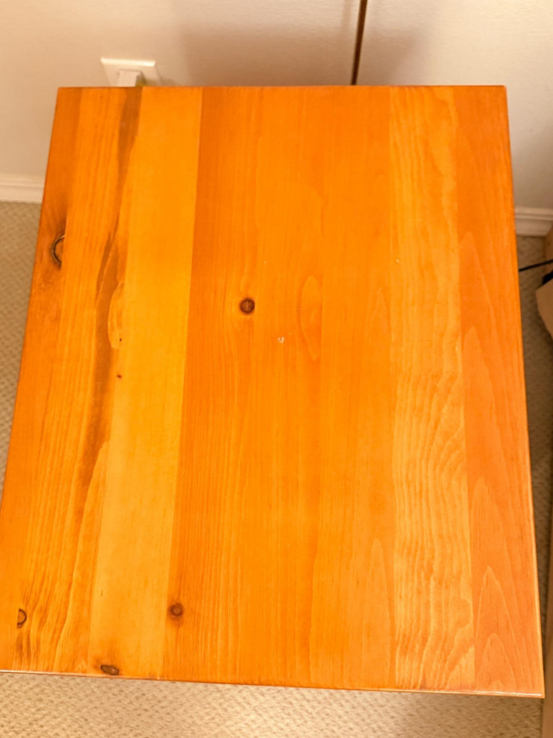 (2)Shaker Style Knotty Pine Nightstands Typical soft pine dings.