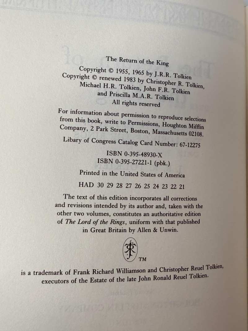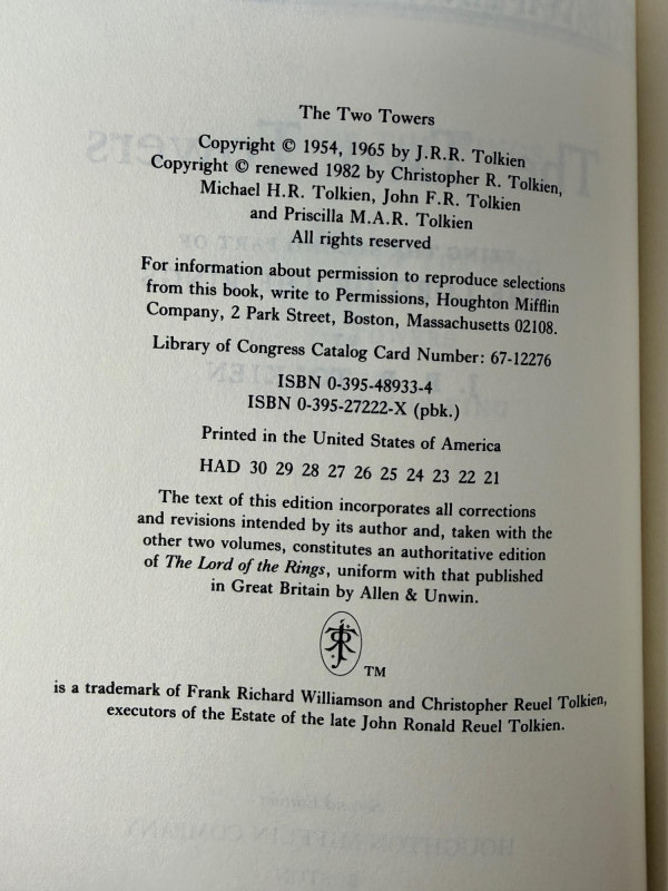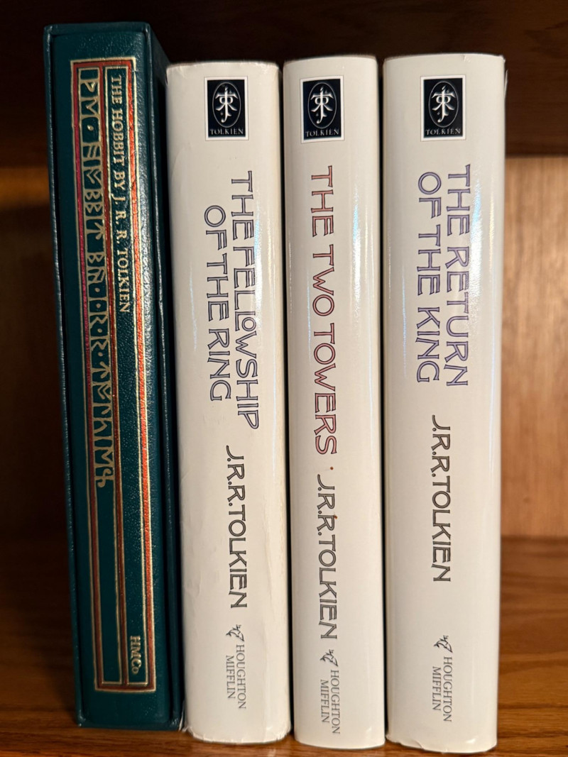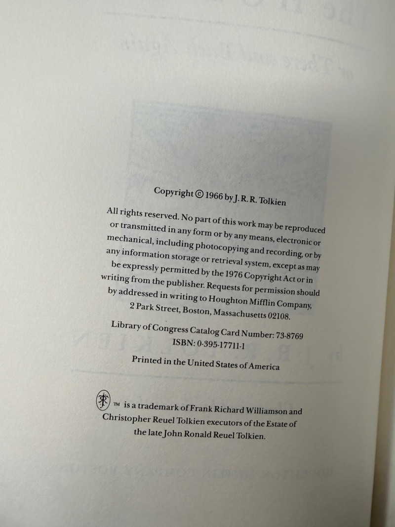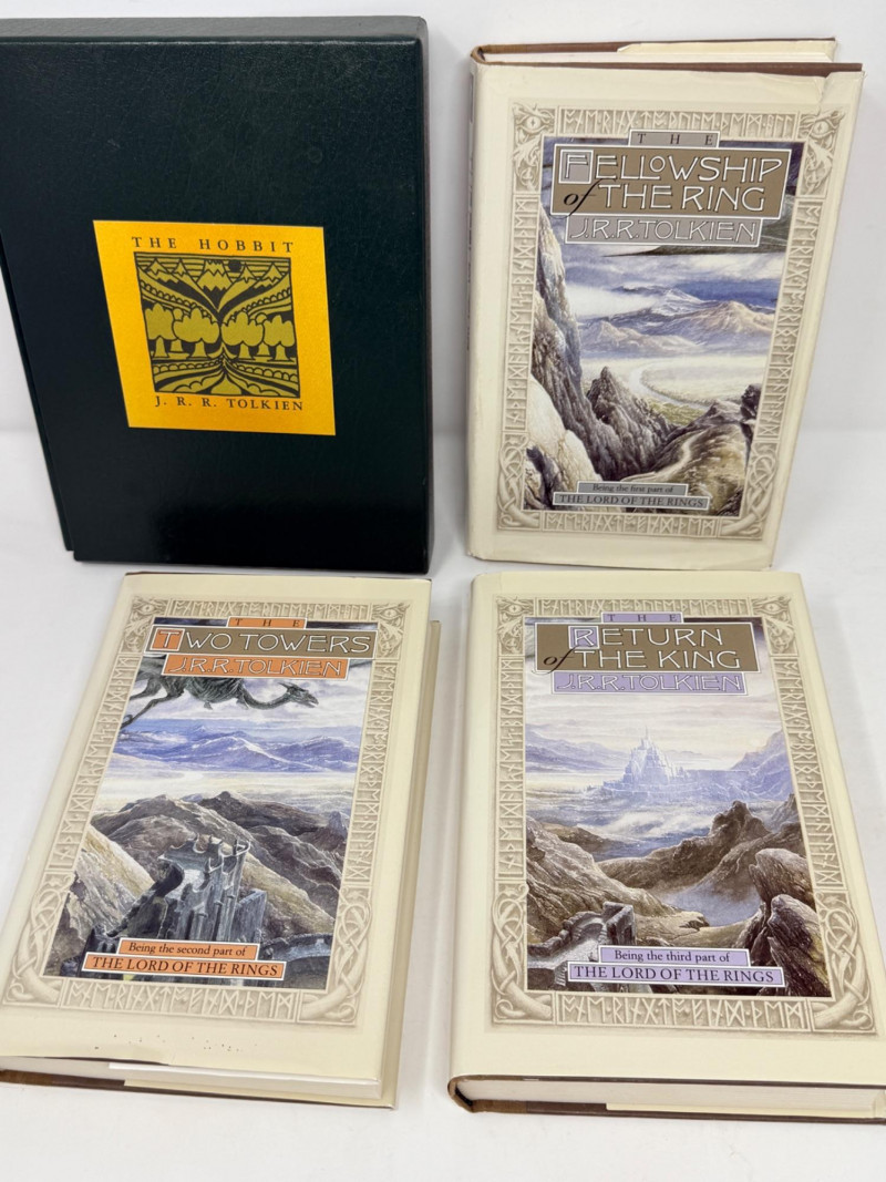 The Hobbit & The Lord of The Rings Set By J.R.R. Tolkien The Hobbit in hard slip cover, without the dust cover The Fellowship of The Rings with tear in upper front dust cover 1987 The Two Towers 1982 The Return of The King 1983