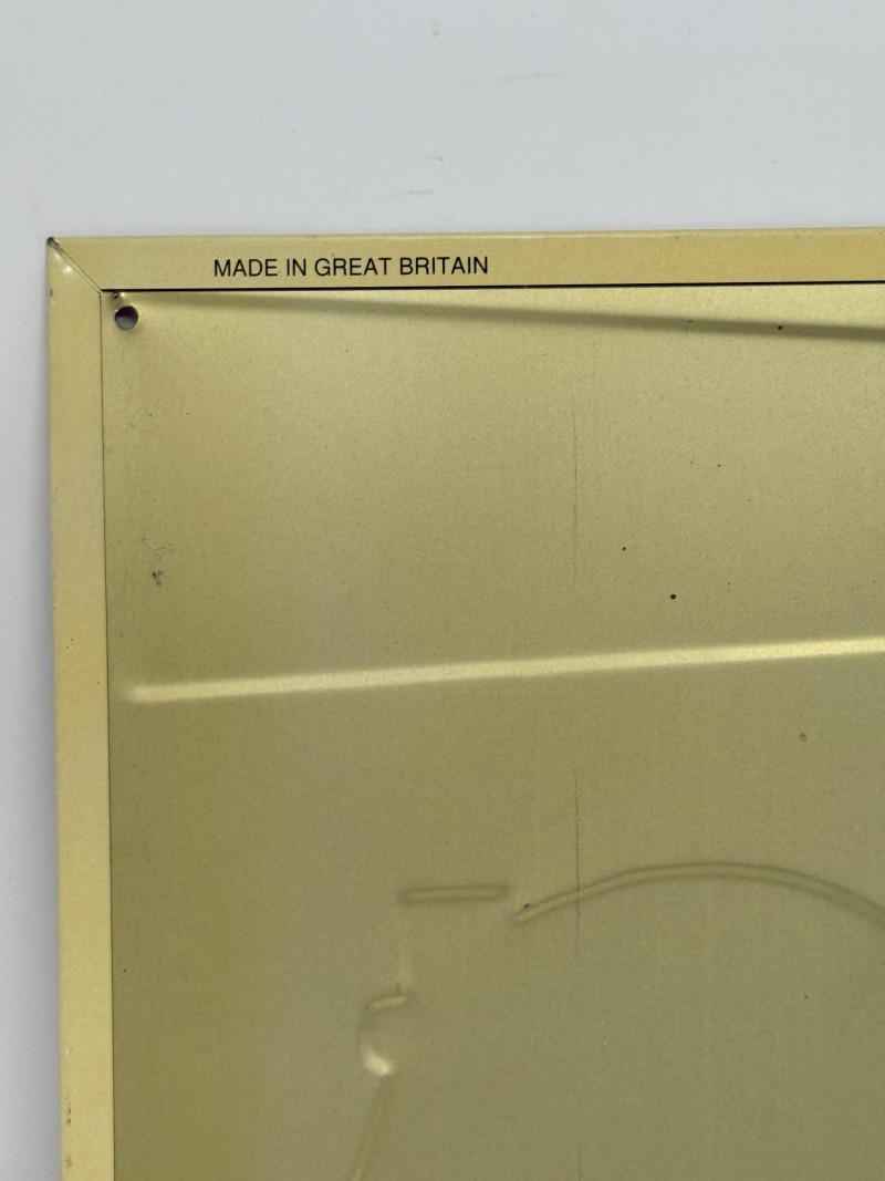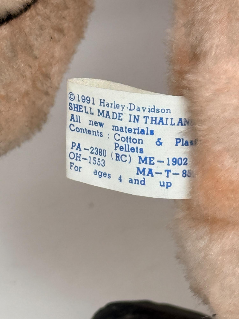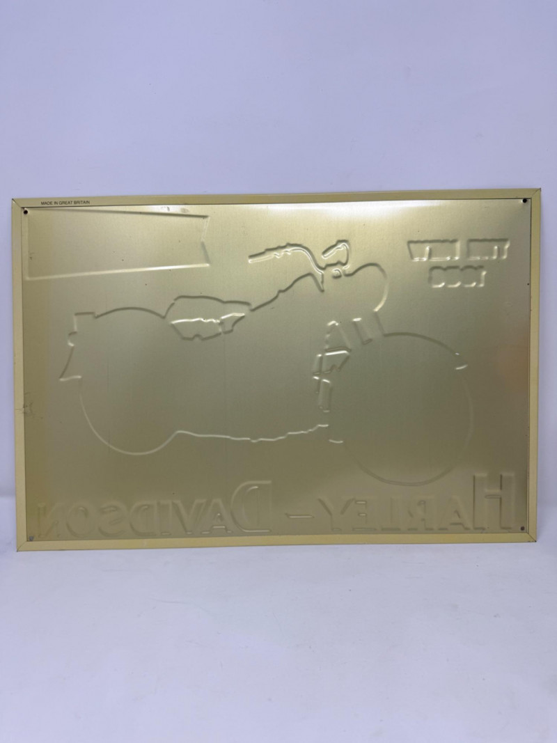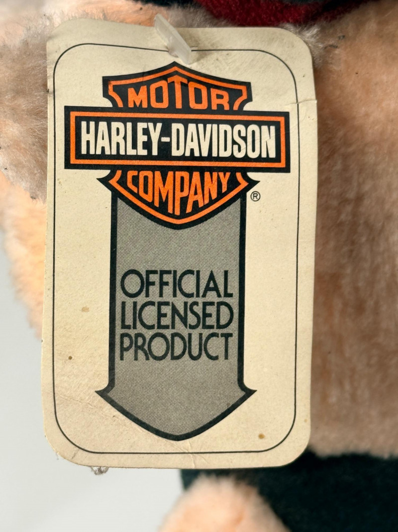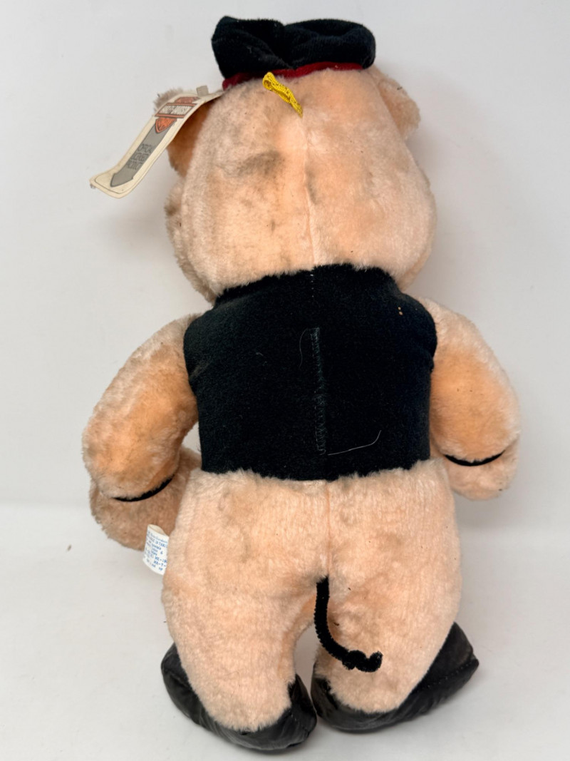 Harley-Davidson Duo-Glide Metal Sign & Stuffed Pig Embossed Metal Sign, Made in Great Britain is 11”x16” Pig measures 16” tall. It has been hanging in a garage and the fur is discolored from dust and age.