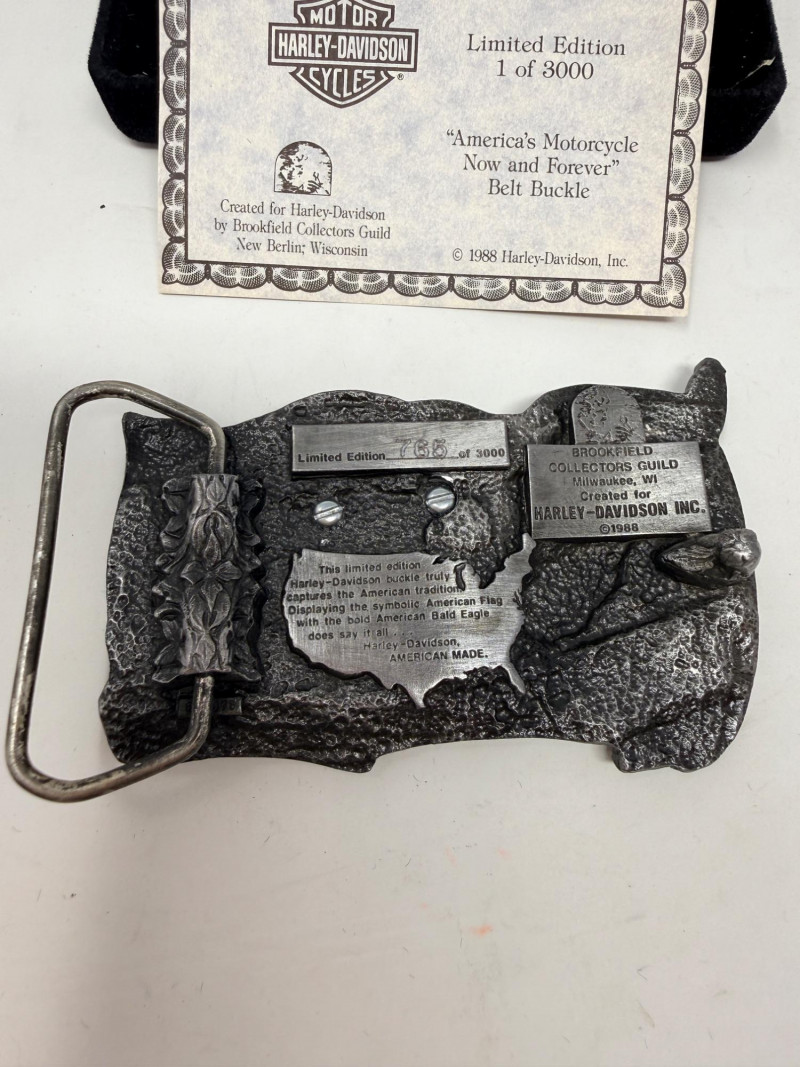 Lot # 192 - 1988 Harley-Davidson “America’s Motorcycle Now & Forever” Belt Buckle