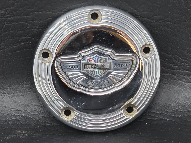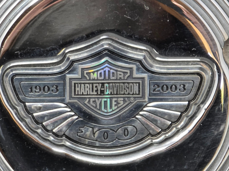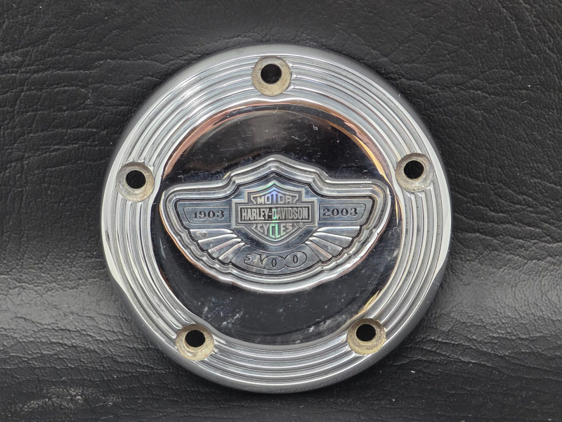 Harley-Davidson 100th Anniversary Derby Cover Collectible item celebrating the brand's centennial in 2003 Features the official 100th Anniversary logo with "1903", "2003", and wings Designed to fit various Harley-Davidson Twin Cam models from 1999–2017 Made of chrome-plated metal Highly sought after by collectors and enthusiasts for restoring or customizing 2003 anniversary models Shows some wear & tear indicative of being installed on a motorcycle (see pics) 3" round Excellent piece of Harley Davidson Centennial history!