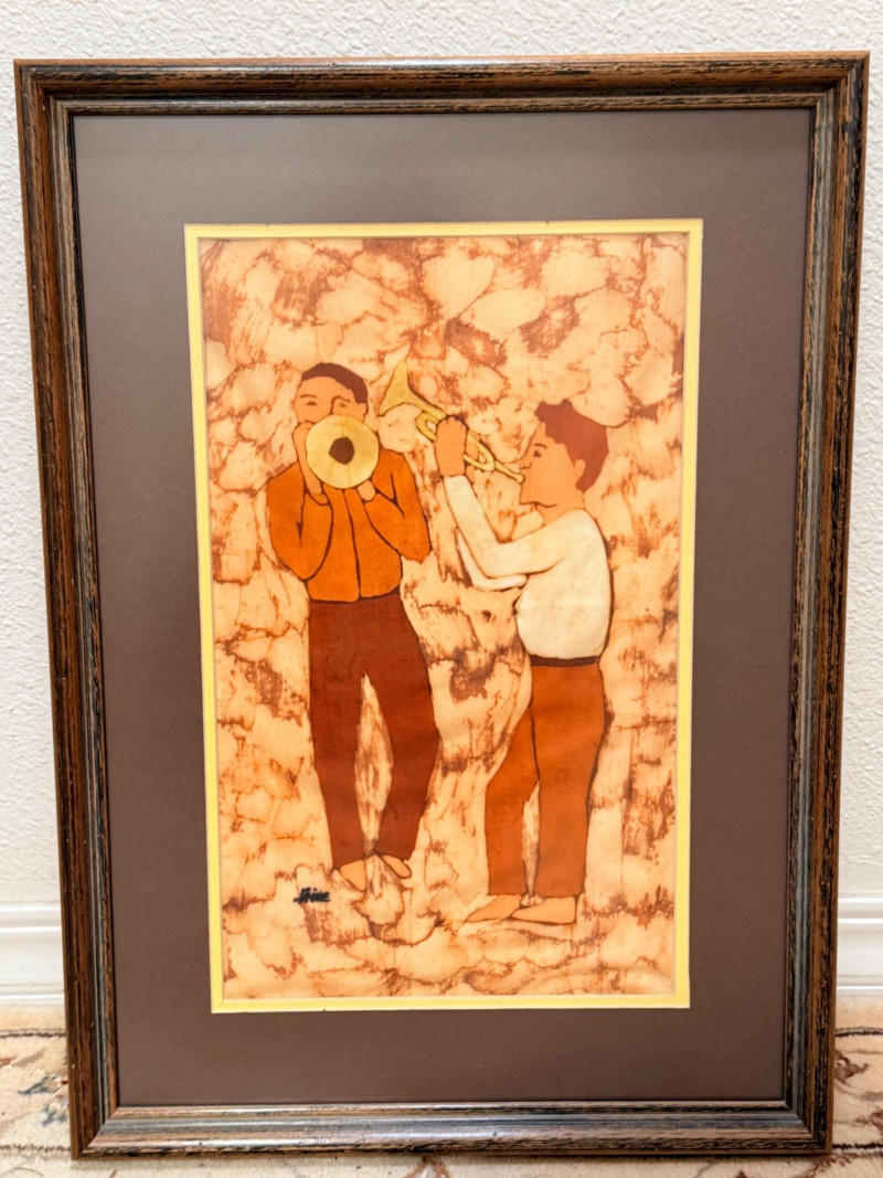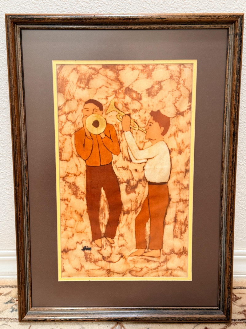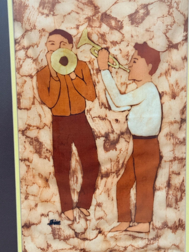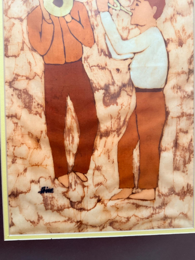 Lot # 197 - "Music Men” Ink on Batik Signed by Artist Faine