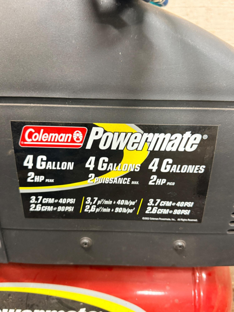 Lot # 216 - Coleman Powermate 4 gal 2hp Air Compressor